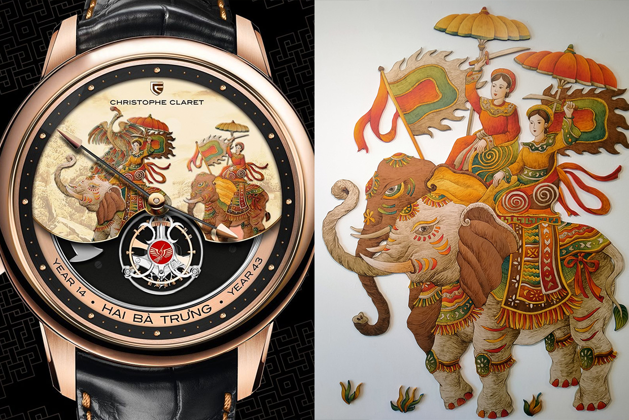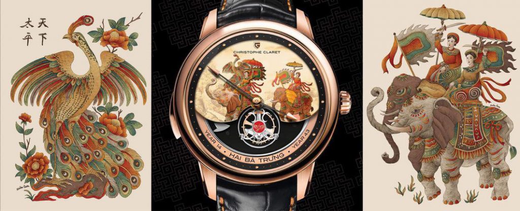 Bức tranh về Hai Bà Trưng cưỡi voi vẽ trên đồng hồ được giới thiệu do họa sĩ nổi tiếng André Martinez vẽ tay. Họa sĩ này sinh ra ở Barcelona nhưng sống ở Thụy Sĩ, thành danh với kỹ thuật vẽ tỉ mỉ trên mặt đồng hồ kim loại. Ông thường hợp tác với Christophe Claret.