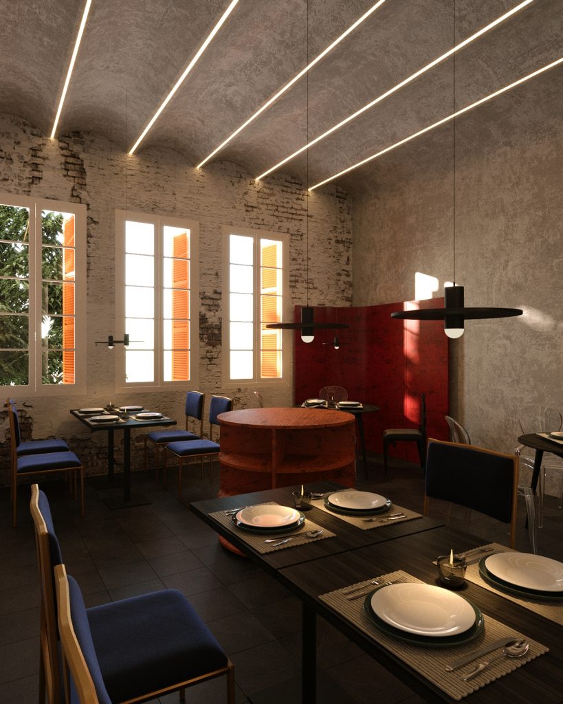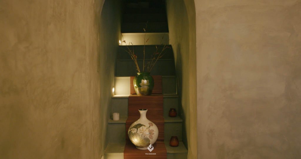 Ngoài ra, một số hạng mục đồ nội thất liên quan trực tiếp tới trải nghiệm khi sinh ra và lớn lên trong lòng Thủ đô của chủ nhà hàng, VG Design đã cùng đội ngũ của Ngoặm thực hiện thủ công, như việc sản xuất ghế, tủ rượu, hiệu ứng sơn hay ánh sáng. Tất cả những chi tiết nhỏ bé hay mộc mạc nhất được thu lượm và chọn lọc để giúp chúng tôi hoàn chỉnh một câu chuyện xuyên suốt cho cả dự án.