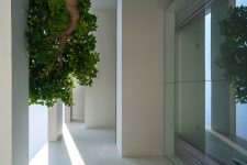 Thiết kế chung của ngôi nhà phảng phất những dấu ấn kiến trúc của Hà Nội thời Pháp thuộc, với mái ngói mũi hài và những ô cửa trong kính ngoài chớp. Thiết kế cửa này giúp ngôi nhà có thể trao đổi không khí với môi trường bên ngoài, lớp cửa kính giúp cách nhiệt mà vẫn lấy được ánh sáng, lớp cửa chớp giúp trao đổi không khí kể cả khi cửa được đóng lại.