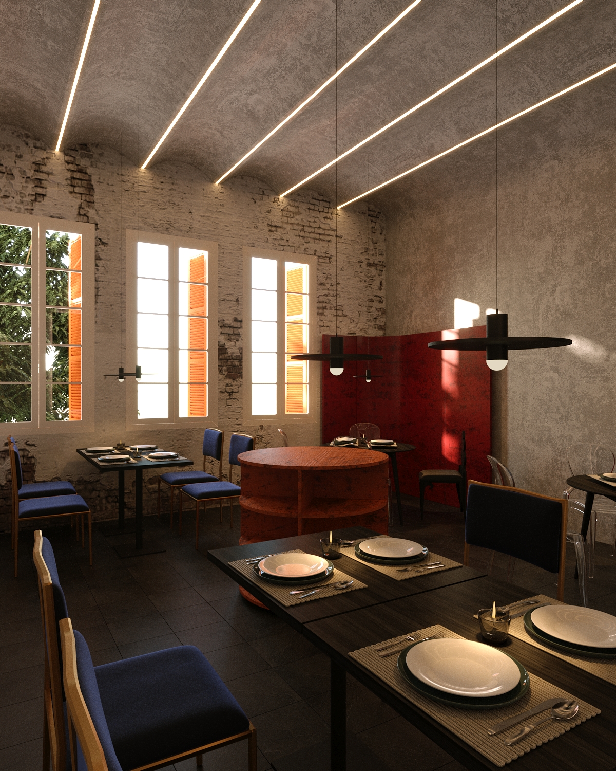 Mô hình kinh doanh của nhà hàng là sự kết hợp thú vị giữa những chiếc Burger và tinh thần cũng nhưng một số món ăn đặc trưng của Hà Nội. Một ý tưởng khác với những gì thường thấy ở một nhà hàng Fusion sang trọng lóng lánh; bởi thế nên cách chúng tôi thực hiện thiết kế này cũng phải mang được cá tính ấy của chủ đầu tư