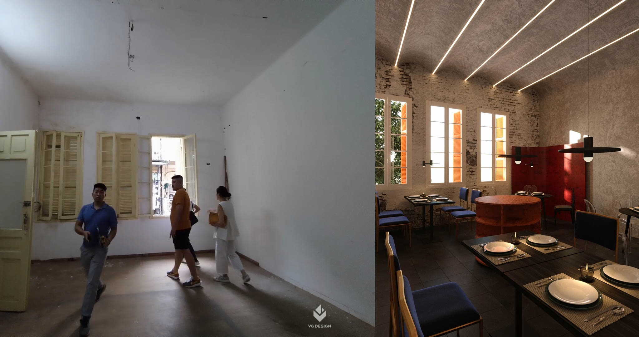 Đó là những mong muốn đầu tiên khi team VG Design tiếp cận với Tú – Chủ nhà hàng và tìm hiểu về dự án Ngoặm – một nhà hàng fusion-bistro pha trộn giữa phong cách ẩm thực châu Âu và trải nghiệm ẩm thực dân dã của đường phố Việt Nam..