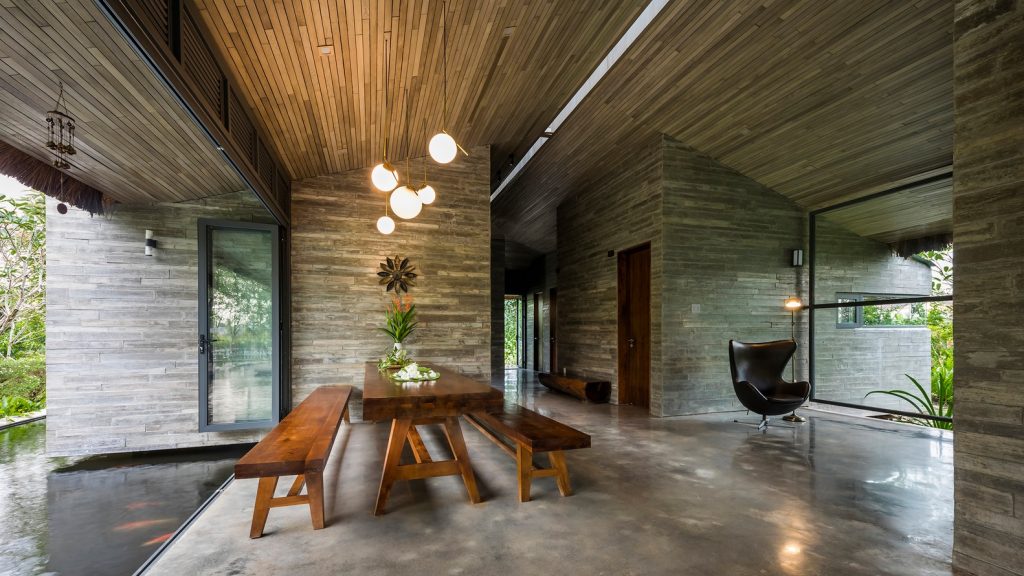 Nhóm KTS Nguyễn Hữu Duy, Nguyễn Duy, Bùi Thế Long đã thiết kế ngôi nhà để gia chủ được sống yên bình và hòa mình với thiên nhiên đúng nghĩa.