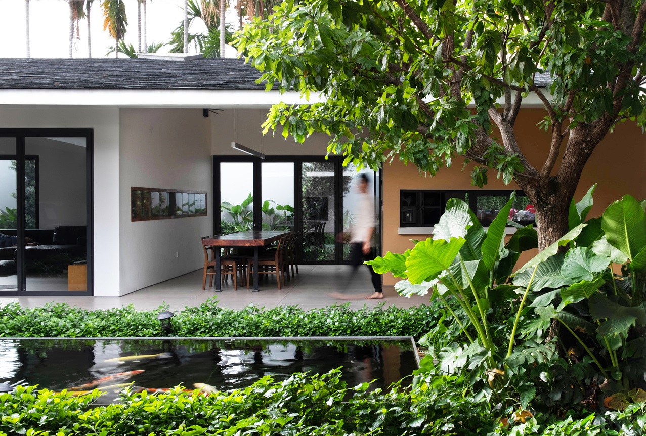 Nằm ở ngoại ô TP.HCM, ngôi nhà là nơi sinh hoạt, vui chơi của một gia đình ba thế hệ. Ngôi nhà được thiết kế nhằm thích ứng với khí hậu nhiệt đới, tăng sự kết nối giữa con người với nhau và với thiên nhiên thông qua không gian sống bằng các giải pháp kiến trúc.