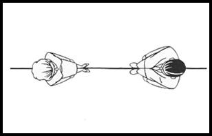 Sơ đồ này cho ta thấy trục liên kết giữa hai nhân vật và các vị trí trên Vòng cung 180° màu Xanh, mà máy quay có thể đặt để quay. Khi cắt cảnh chuyển sang các vị trí trên vòng cung 180° màu Đỏ, các Nhân vật ngay lập tức chuyển đổi vị trí trên màn hình.