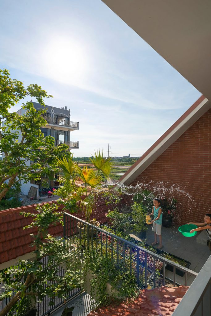 Phần mái sân trước là nơi được gia đình trồng rau và chăm sóc những khu vườn nhỏ những lúc thảnh thơi, hưởng thụ cuộc sống bình yên và ý nghĩa.