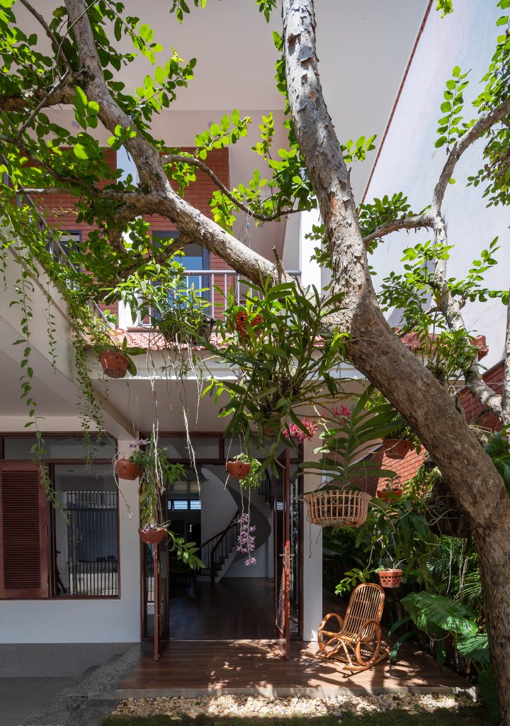 Một cây lớn phủ bóng được bố trí ở khoảng sân trước làm điểm nhấn chính tạo nên sự bình yên khi bước vào cổng nhà. Tại chốn này cả gia đình có thể dùng bữa cơm ngoài sân dưới bóng cây, hay những câu chuyện rôm rả với hàng xóm nhâm nhi bên ấm trà xanh.