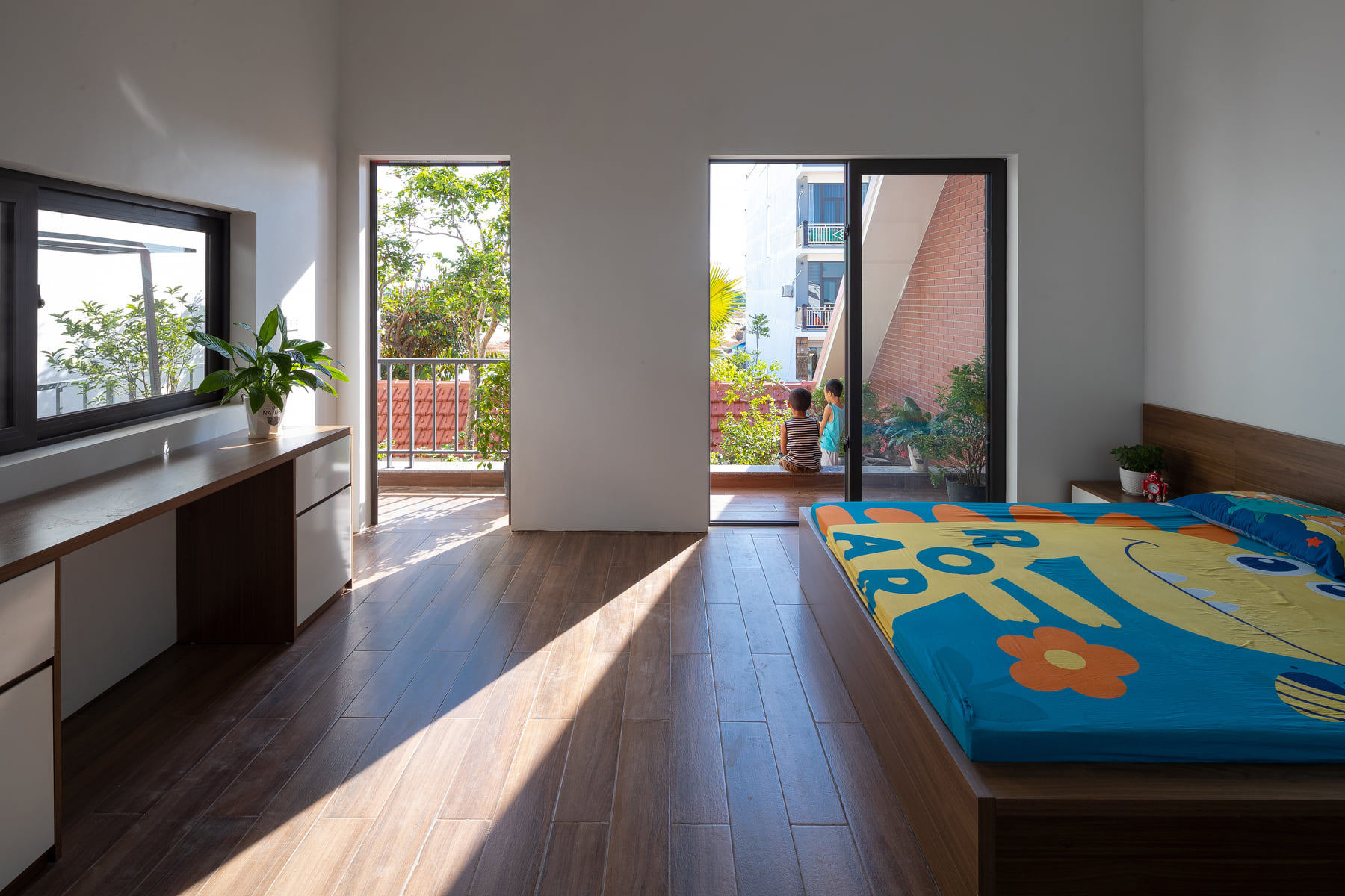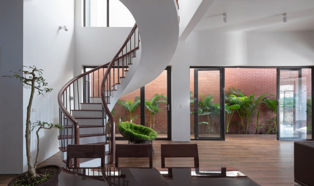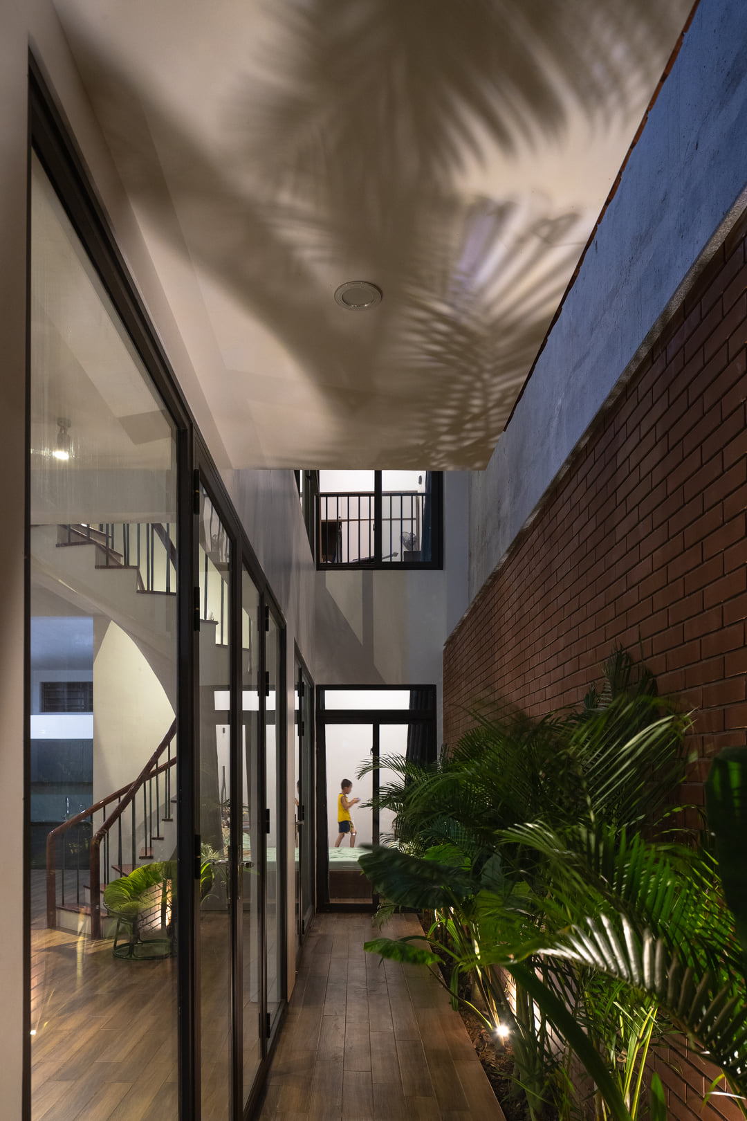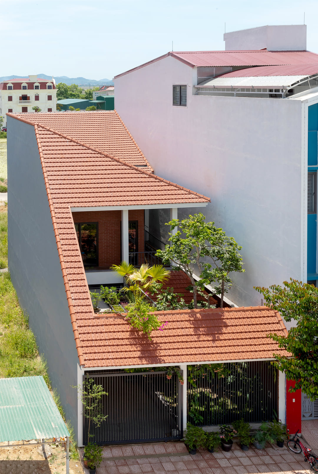 Một cây lớn phủ bóng được bố trí ở khoảng sân trước làm điểm nhấn chính tạo nên sự bình yên khi bước vào cổng nhà. Tại chốn này cả gia đình có thể dùng bữa cơm ngoài sân dưới bóng cây, hay những câu chuyện rôm rả với hàng xóm nhâm nhi bên ấm trà xanh.