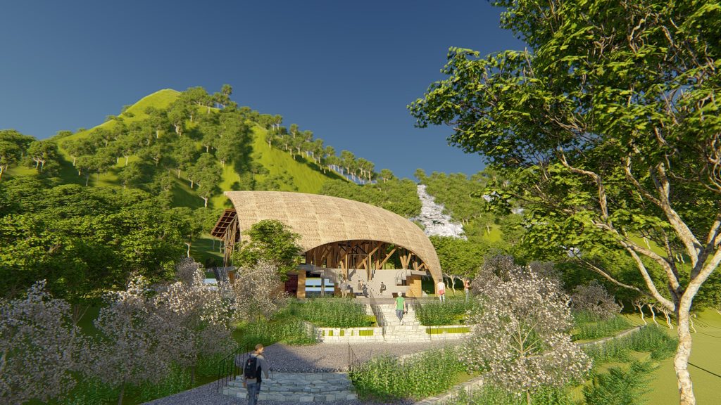 Ý tưởng thiết kế nhà cộng đồng được lấy cảm hứng từ chiếc khăn đội đầu của các dân tộc thiểu số địa phương và hình thức nhà truyền thống điển hình, đồng thời cũng hài hòa với cảnh quan núi non và thác nước đẹp như tranh vẽ. Công trình trở thành điểm tập trung vừa mới lạ vừa quen thuộc, là kết quả của một nghiên cứu lâu dài về trí tuệ bản địa, dựa trên các nguồn lực địa phương: kinh tế, văn hóa và lao động địa phương.