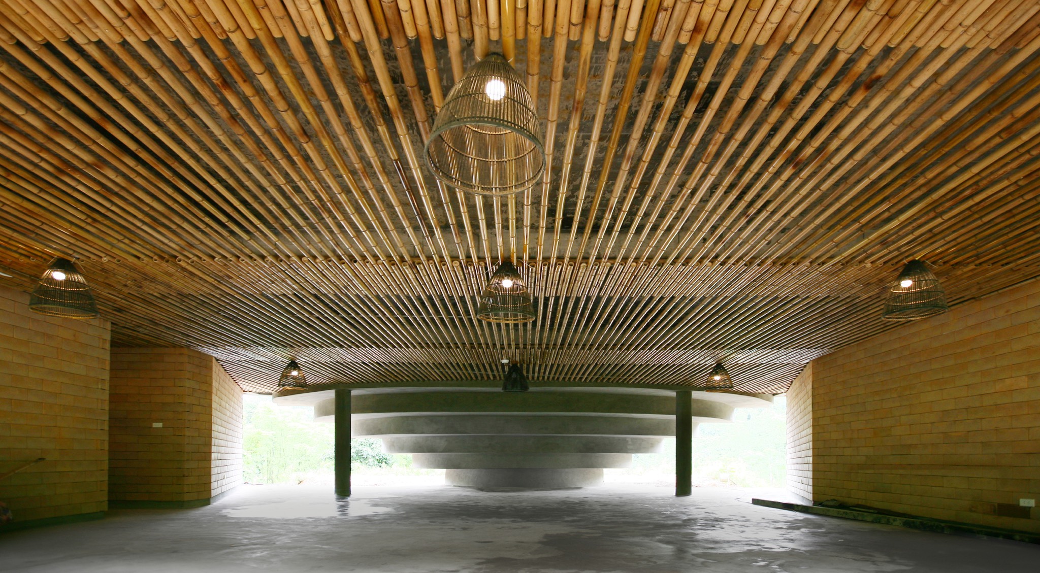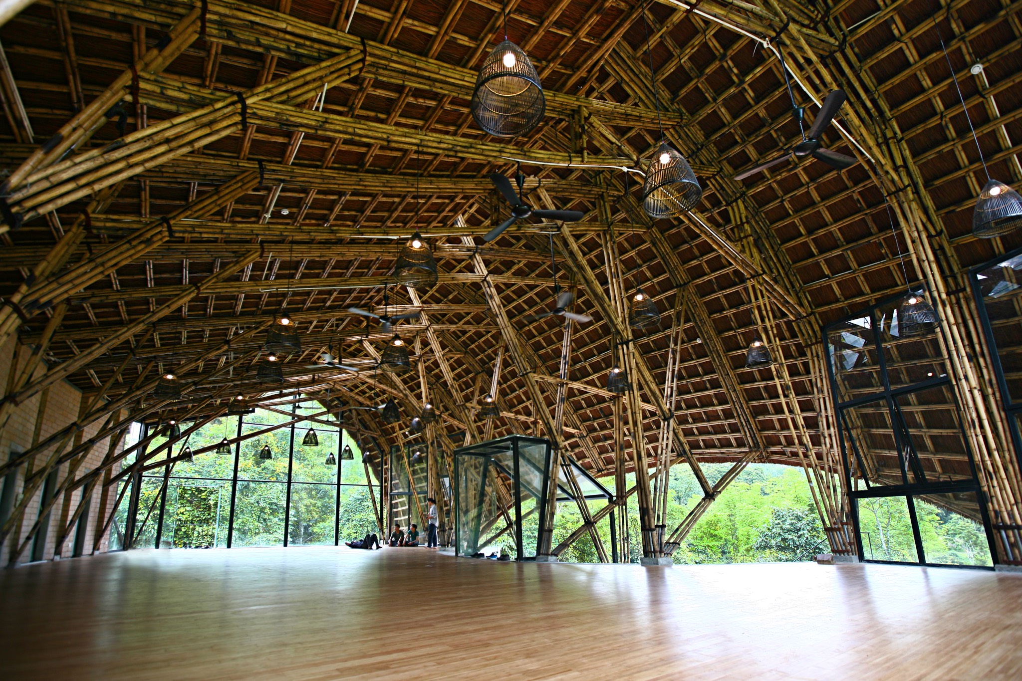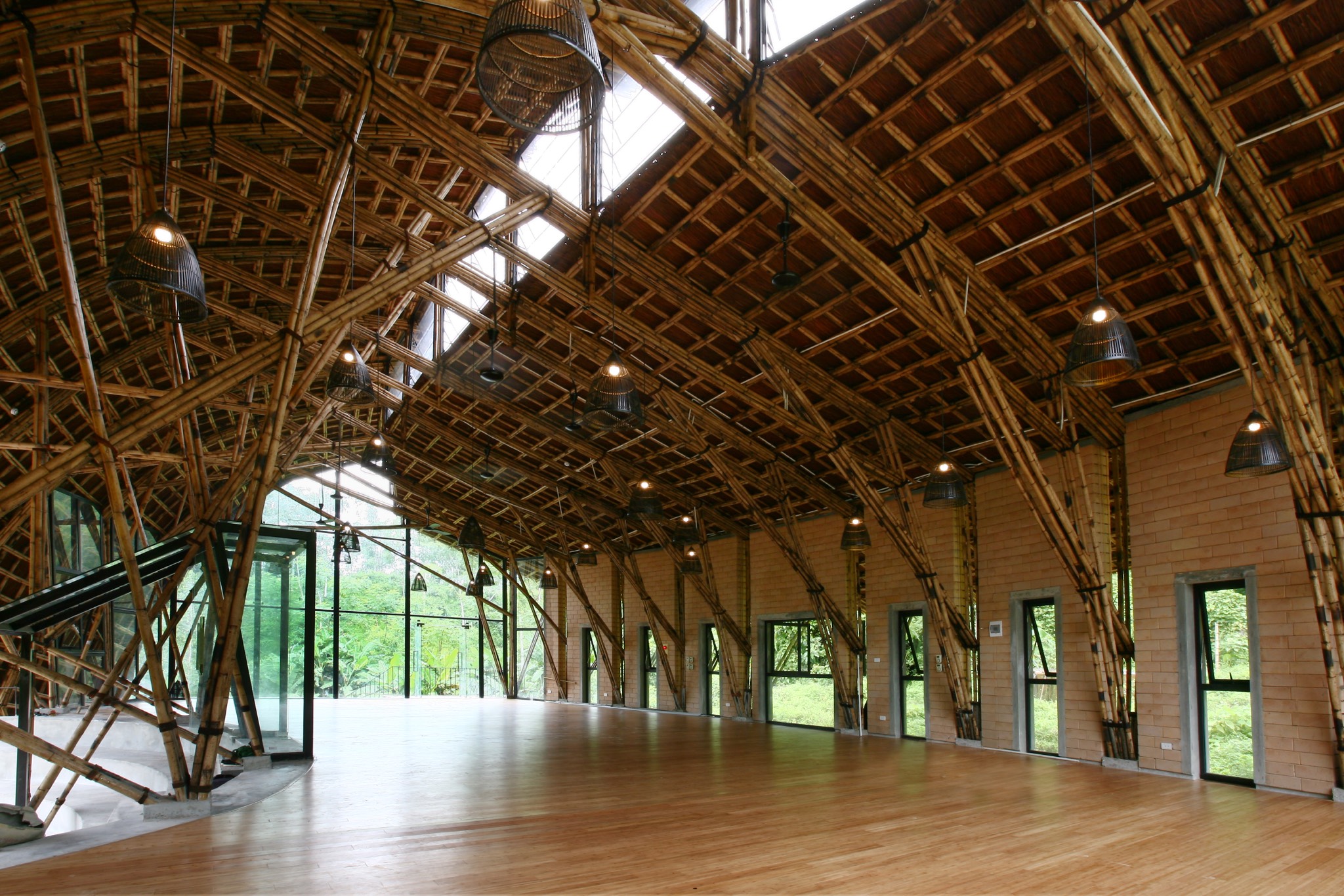 Nhà cộng đồng đáp ứng yêu cầu kiến trúc xanh nhờ sử dụng gạch không nung, cấu trúc khung tre, mái bằng gỗ và lá cọ, kiểm soát ảnh hưởng của bức xạ mặt trời hướng tây.