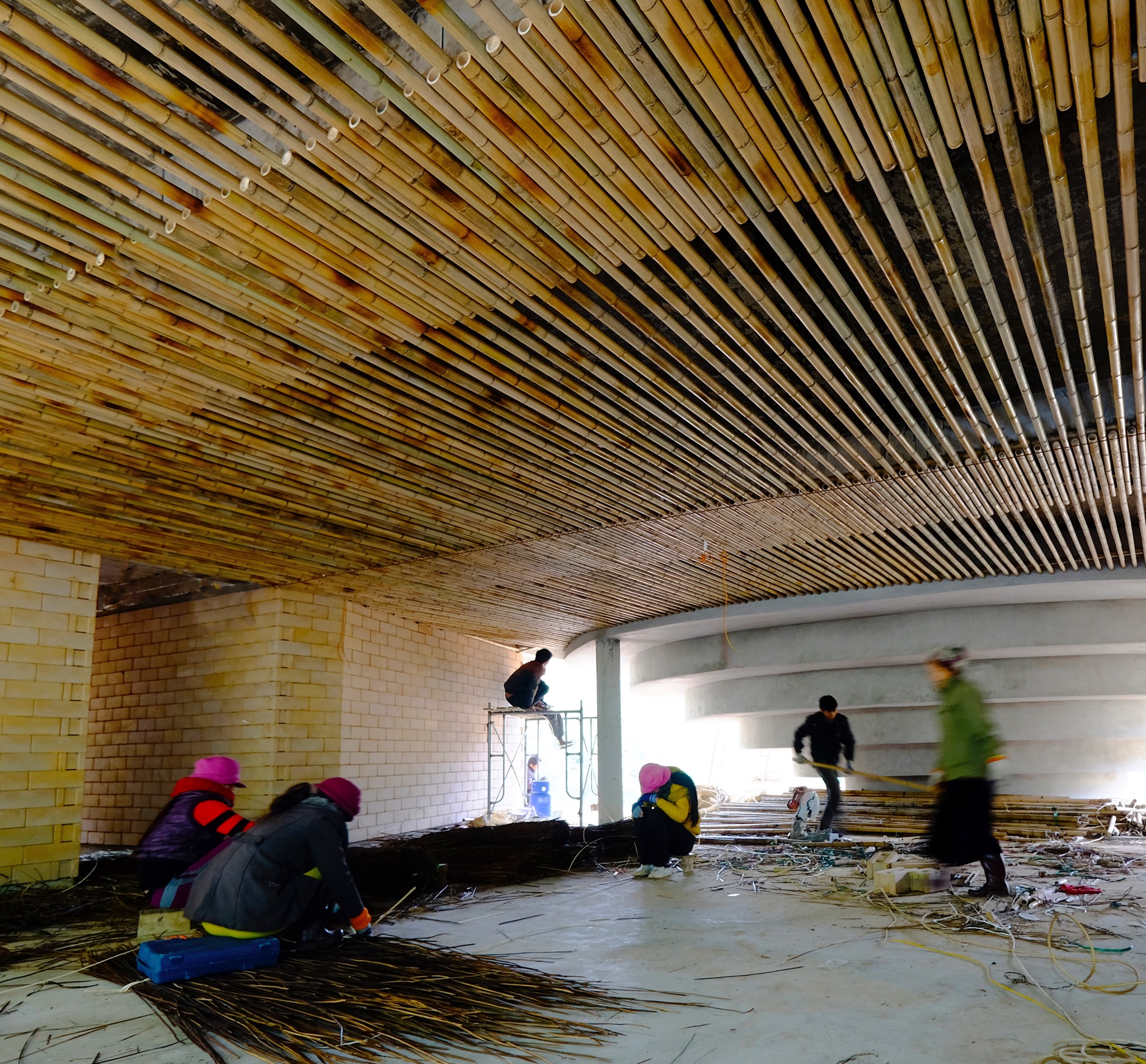 Ý tưởng thiết kế nhà cộng đồng được lấy cảm hứng từ chiếc khăn đội đầu của các dân tộc thiểu số địa phương và hình thức nhà truyền thống điển hình, đồng thời cũng hài hòa với cảnh quan núi non và thác nước đẹp như tranh vẽ. Công trình trở thành điểm tập trung vừa mới lạ vừa quen thuộc, là kết quả của một nghiên cứu lâu dài về trí tuệ bản địa, dựa trên các nguồn lực địa phương: kinh tế, văn hóa và lao động địa phương.