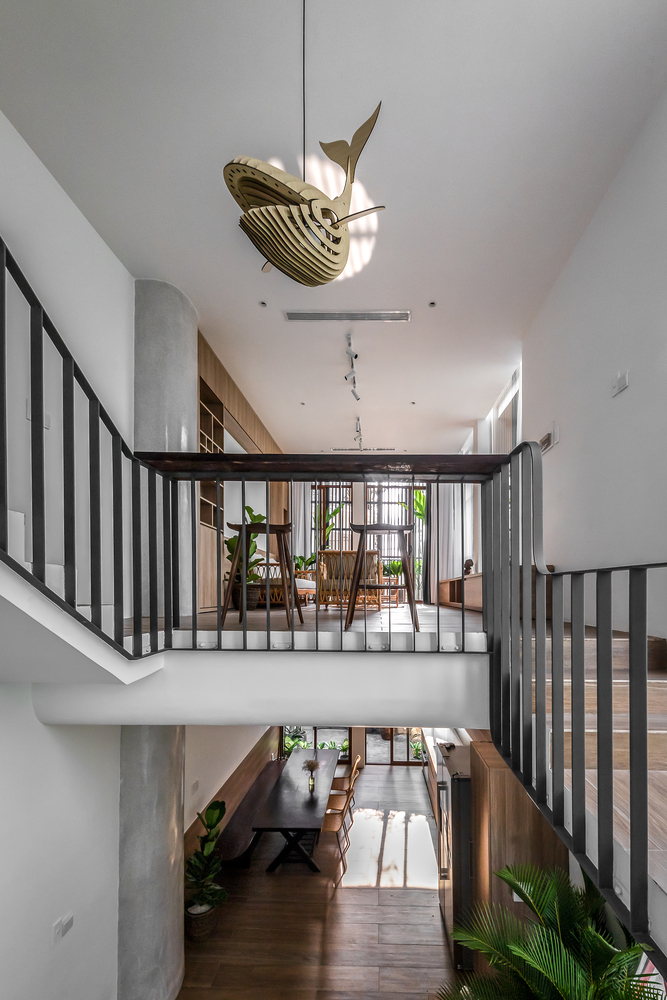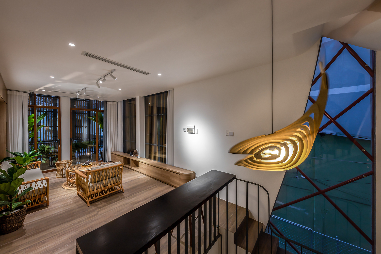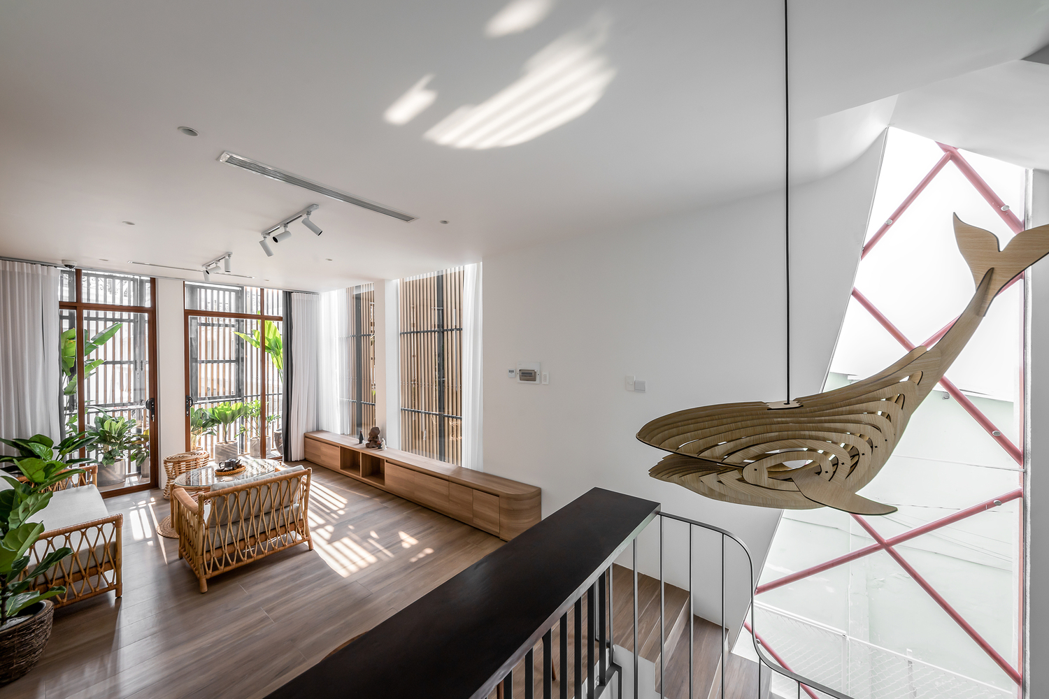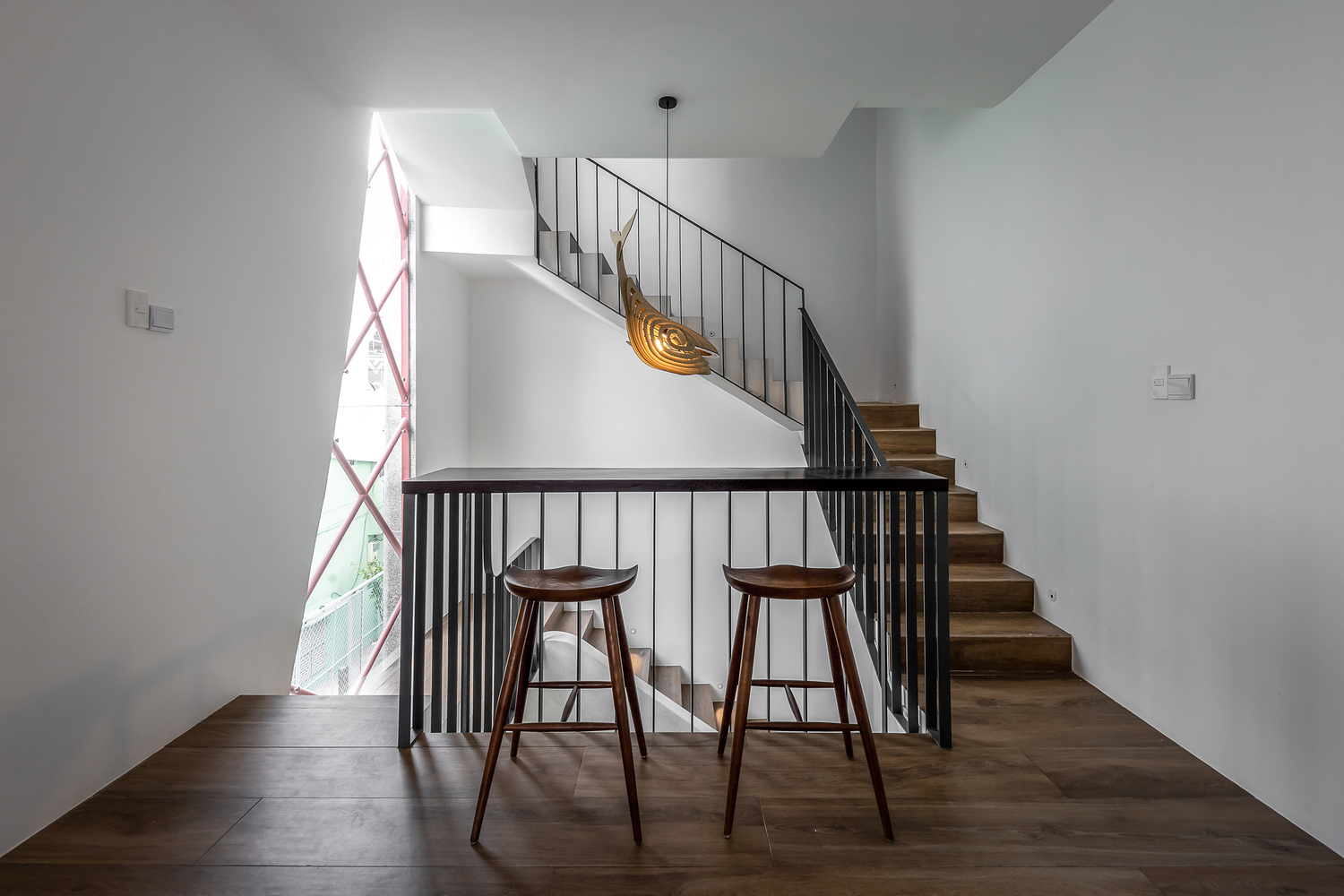 Tuy có diện tích khá nhỏ nhưng tất cả các không gian trong căn nhà đều được thiết kế những ô thông tầng, hoặc những mảng kính để giải phóng tầm nhìn.