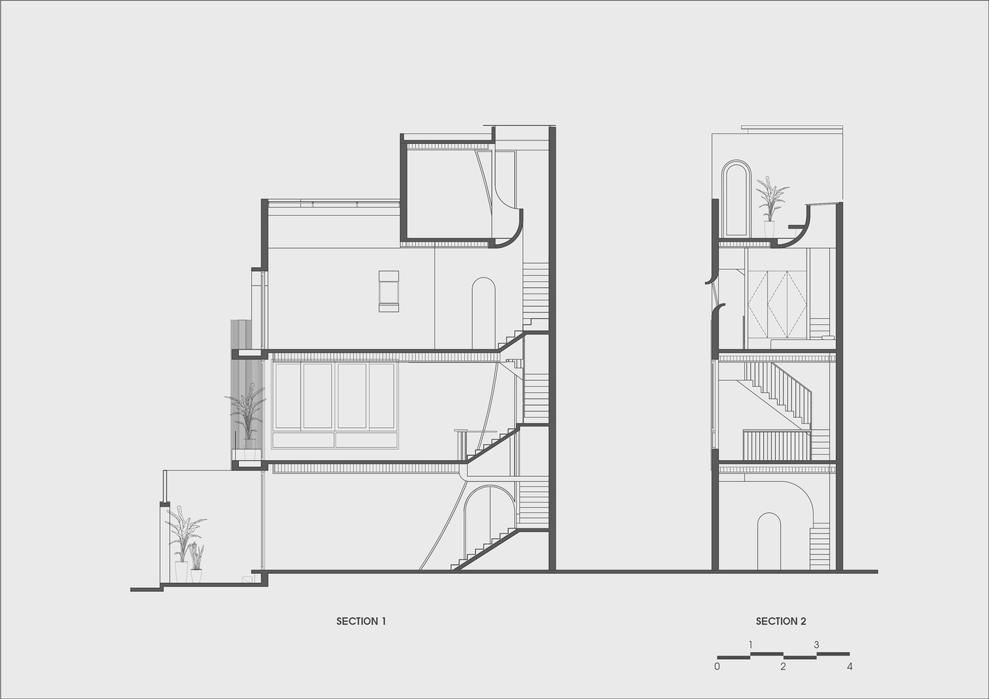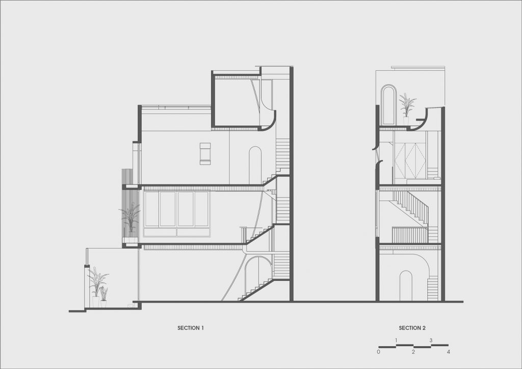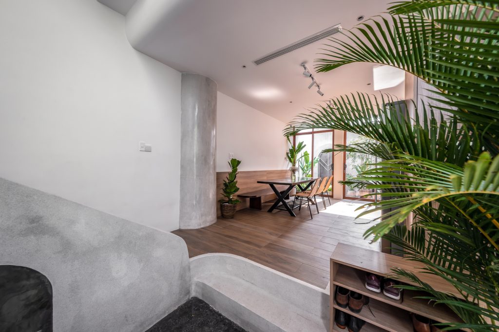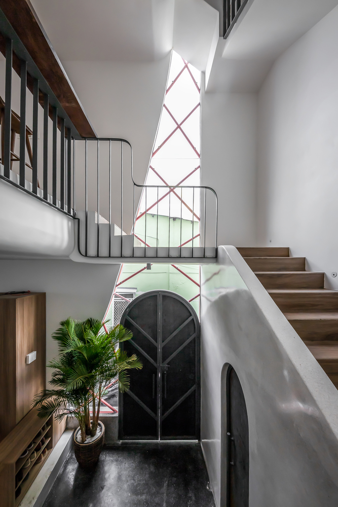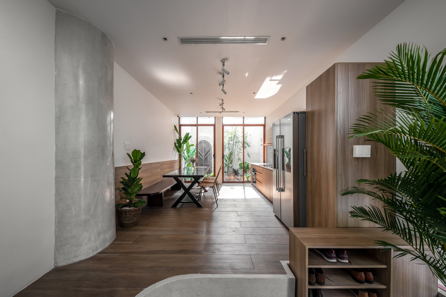 Tuy có diện tích khá nhỏ nhưng tất cả các không gian trong căn nhà đều được thiết kế những ô thông tầng, hoặc những mảng kính để giải phóng tầm nhìn.