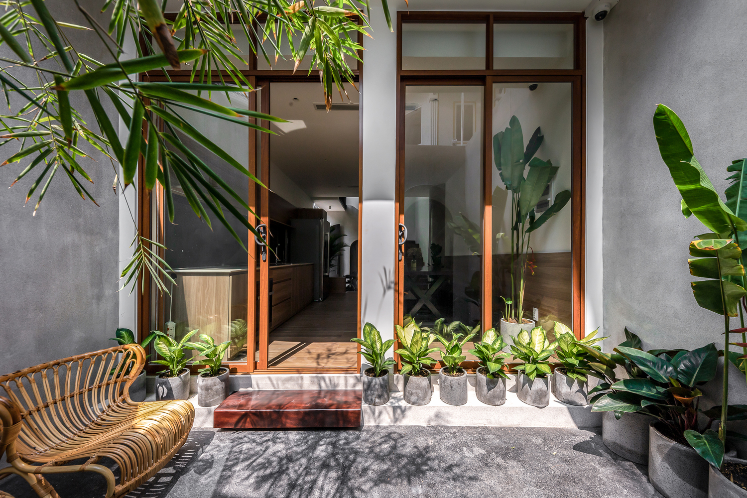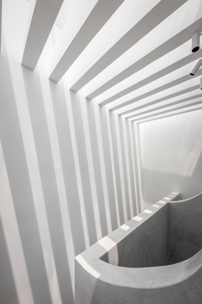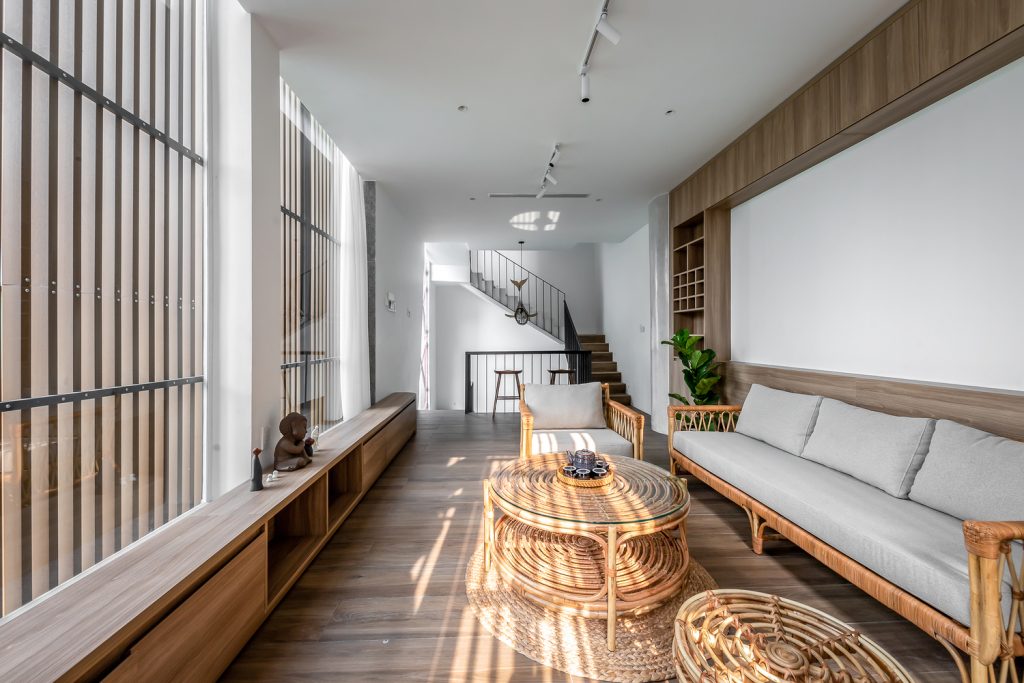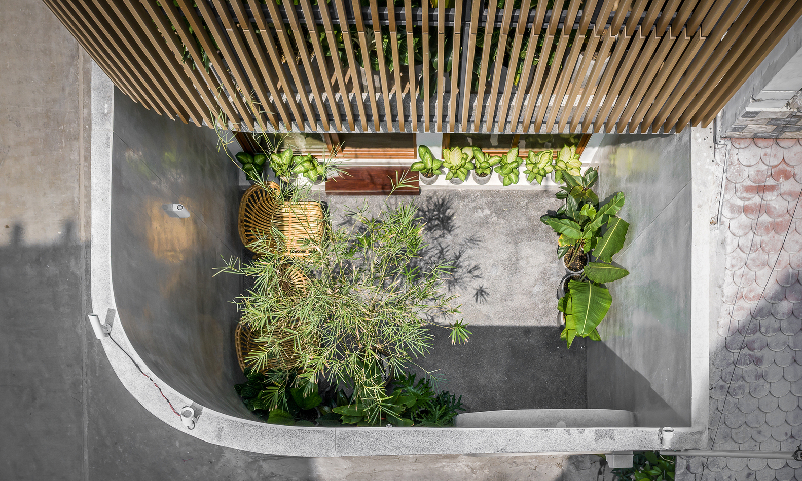 Nhà nằm trong hẻm nhỏ nên hệ thống lam che nắng giúp nhà lấy sáng, gió nhưng vẫn riêng tư, không bị làm phiền bởi các nhà đối diện.