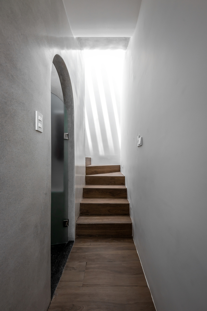 Mảng kính lớn với những đường cong bất quy tắc ở khu vực cầu thang cũng tạo cảm giác thú vị hơn khi di chuyển trong căn nhà.