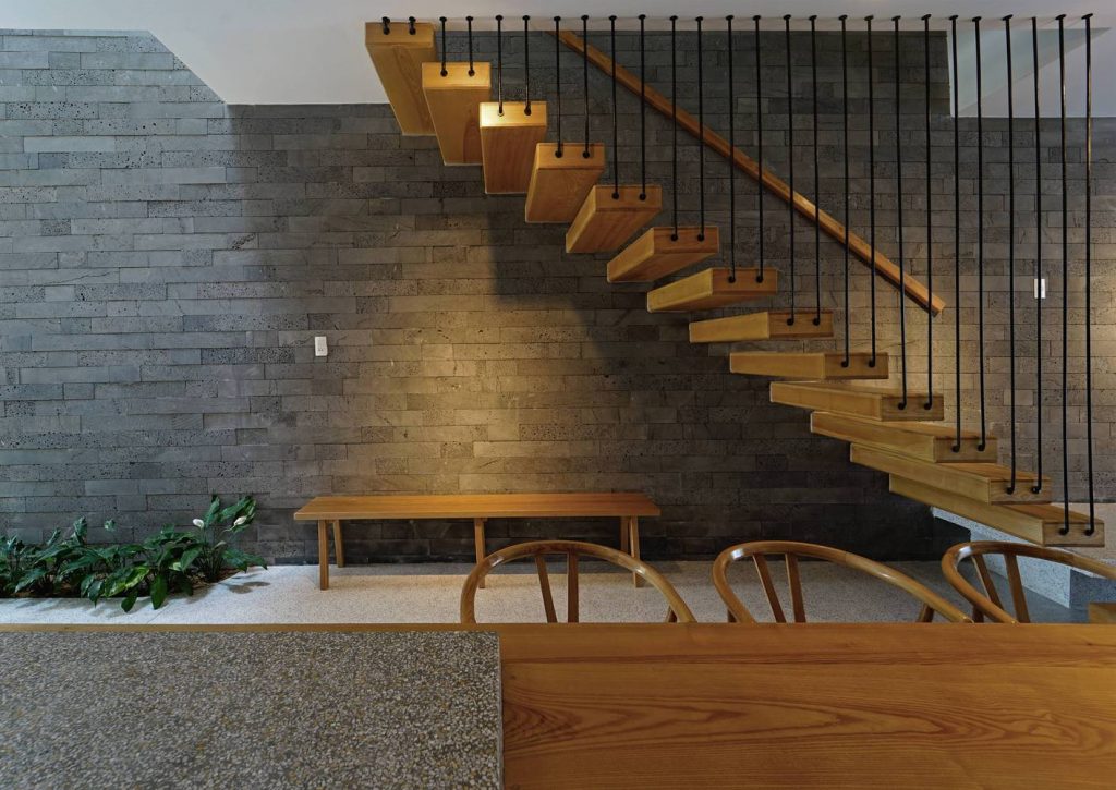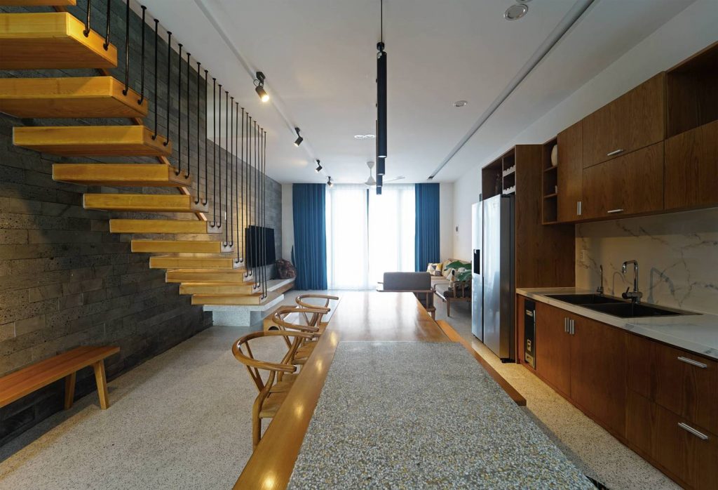 Về không gian nội thất, gỗ được sử dụng làm chất liệu nội thất chính tạo cảm giác ấm cúng cho ngôi nhà. Bên cạnh đó, kết hợp các gam màu trung tính xung quanh để giảm nhiệt độ bên trong ngôi nhà một cách đáng kể.