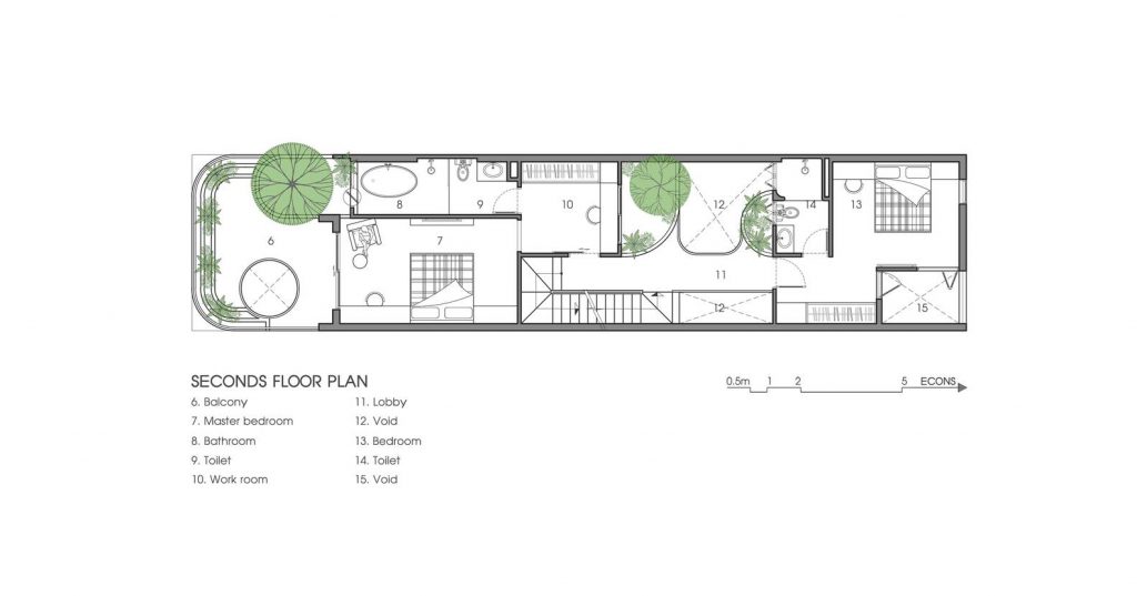 Ngôi nhà được thiết kế cho một cặp vợ chồng trẻ và ba em bé. Trong một khu vực đang phát triển, không gian xanh dần biến mất do quá trình đô thị hóa. Sau một thời gian dài ở bên ngoài, họ yêu cầu một không gian sống đầy nắng, gió và yên bình để tận hưởng thời gian ở nhà.