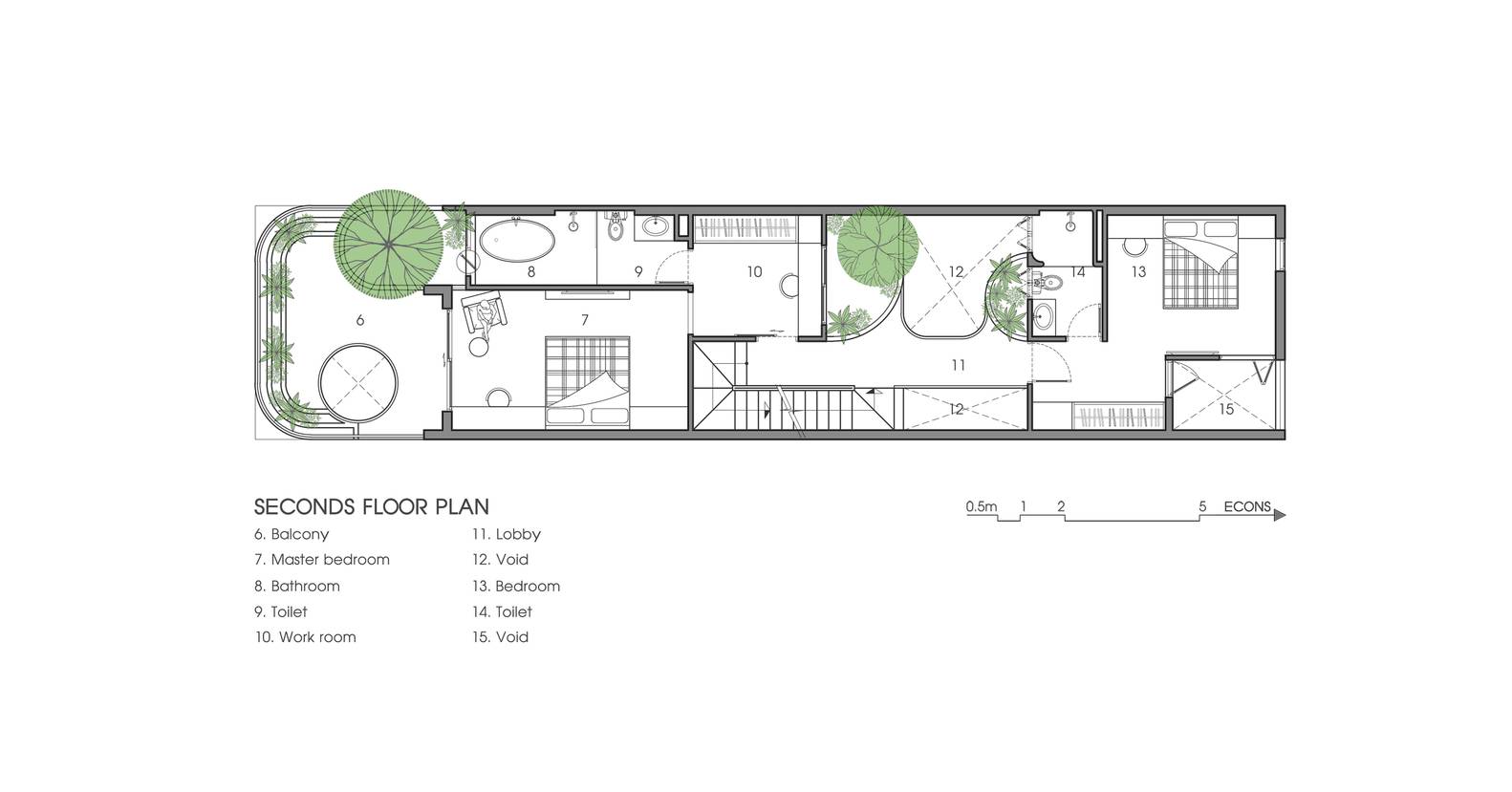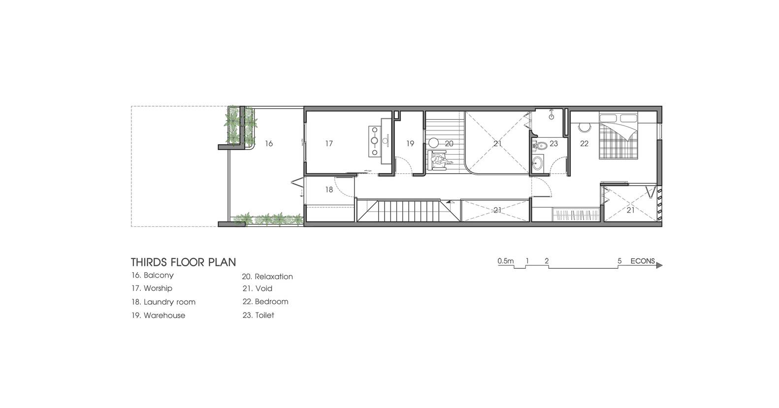 Ngôi nhà được thiết kế cho một cặp vợ chồng trẻ và ba em bé. Trong một khu vực đang phát triển, không gian xanh dần biến mất do quá trình đô thị hóa. Sau một thời gian dài ở bên ngoài, họ yêu cầu một không gian sống đầy nắng, gió và yên bình để tận hưởng thời gian ở nhà.