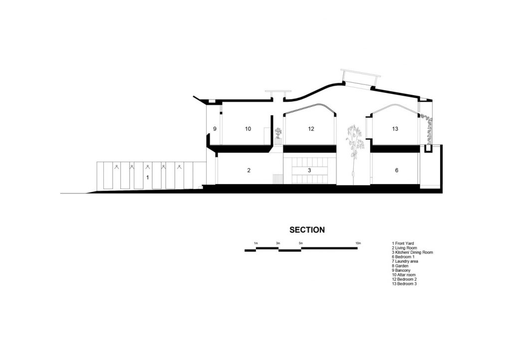 Về yếu tố cách nhiệt, không khí di chuyển liên tục trong nhà theo phương thẳng đứng tại các hành lang và theo phương ngang qua các khối gạch thông gió và các khe hở, giúp môi trường nhiệt bên trong được duy trì ở mức dễ chịu một cách tự nhiên và do đó giảm thiểu việc sử dụng quạt và điều hòa không khí cả ngày.