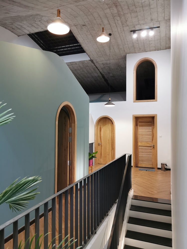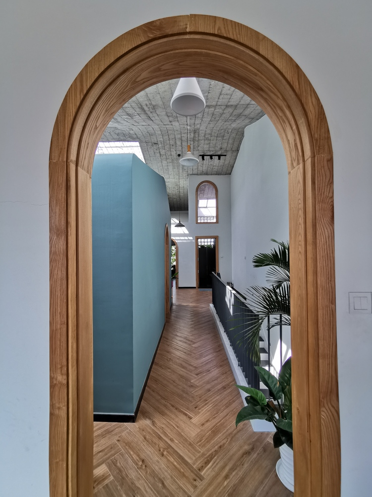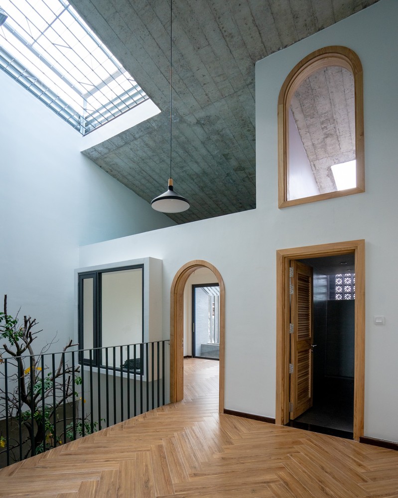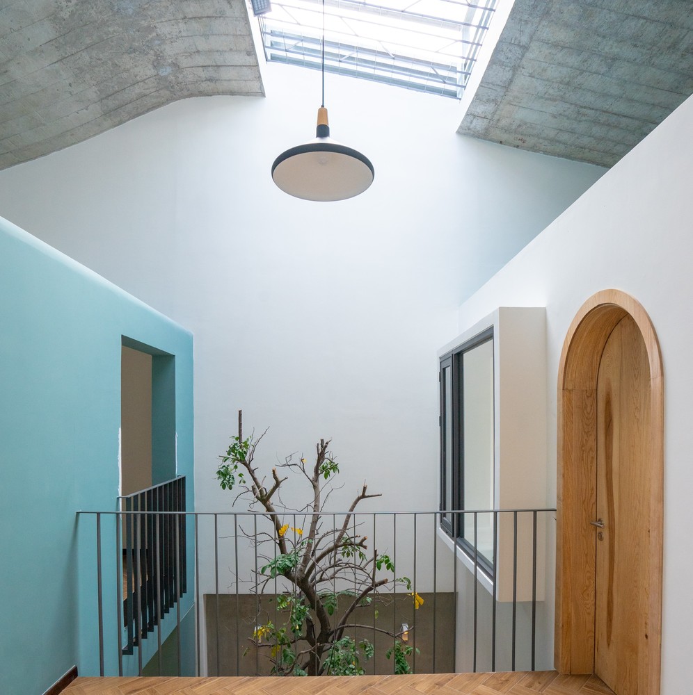 Về thị giác, nhờ việc tận dụng hiệu quả công năng của giếng trời, mặc dù tỷ lệ cửa sổ trên tường trung bình dưới 10%, các không gian sống và làm việc trong nhà vẫn có thể lấy được ánh sáng tự nhiên vào ban ngày. Vì vậy, nhu cầu sử dụng điện ánh sáng ban ngày là không cần thiết.