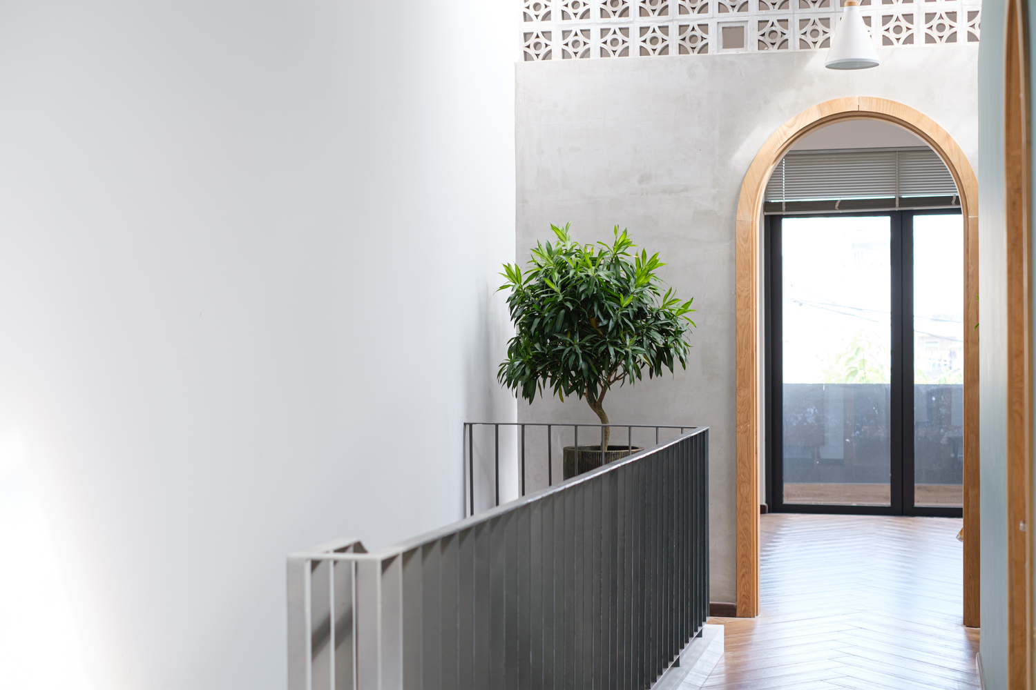 Về yếu tố cách nhiệt, không khí di chuyển liên tục trong nhà theo phương thẳng đứng tại các hành lang và theo phương ngang qua các khối gạch thông gió và các khe hở, giúp môi trường nhiệt bên trong được duy trì ở mức dễ chịu một cách tự nhiên và do đó giảm thiểu việc sử dụng quạt và điều hòa không khí cả ngày.