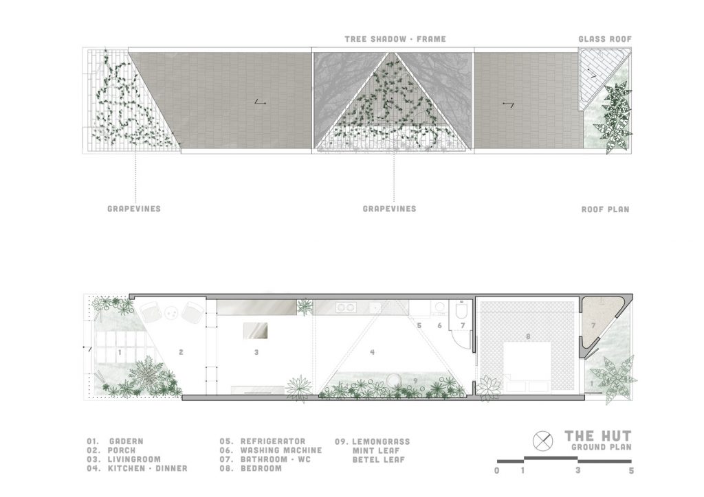 Ngôi nhà được thiết kế dành cho những cặp vợ chồng trẻ. Sau ngày dài đi làm mệt mỏi, họ mong muốn có một không gian yên tĩnh và thanh bình để trở về. The Hut tuy nằm cách xa trung tâm nhưng lại nép mình trong một khu vực đang phát triển. Những không gian xanh dần biến mất do quá trình đô thị hóa đã đặt ra câu hỏi để đưa sự cân bằng trở lại.