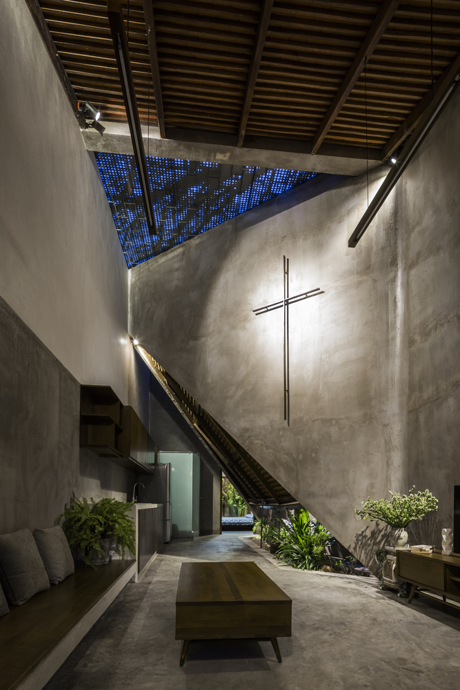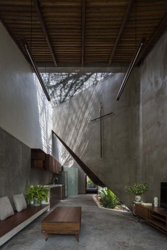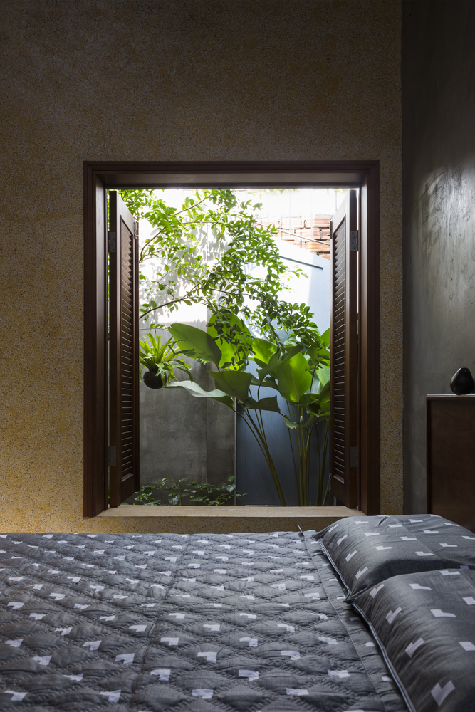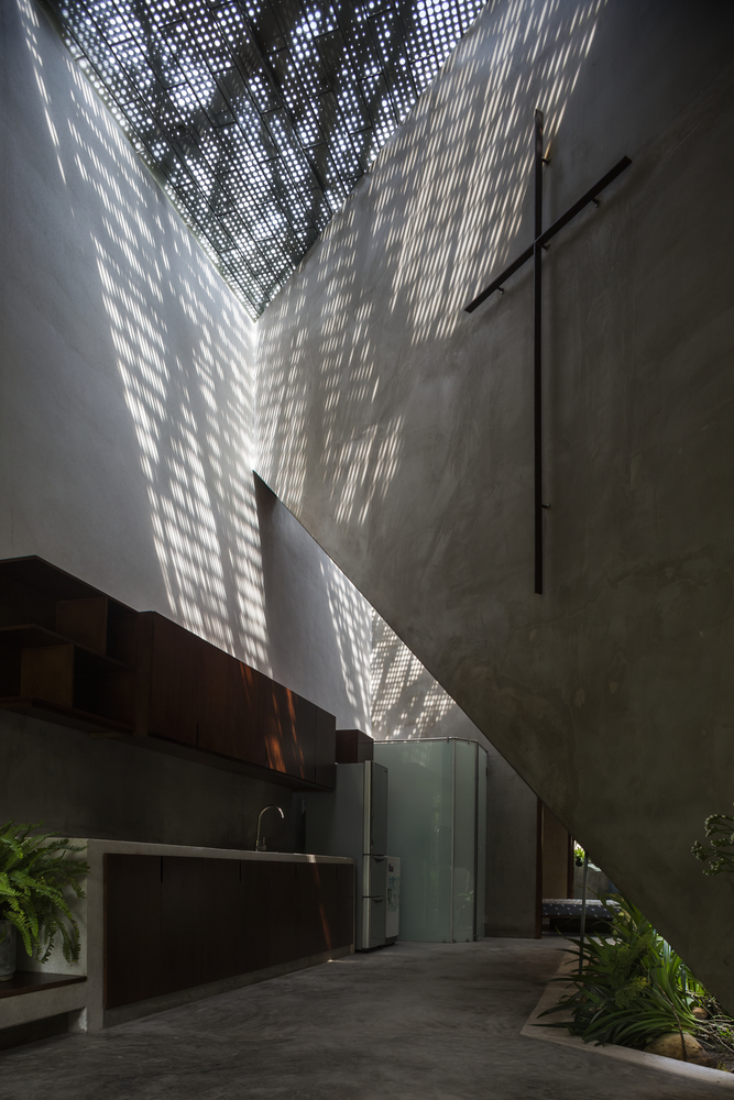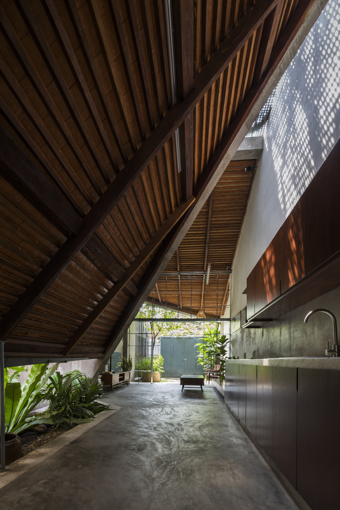 Không gian bếp được ngăn cách bằng ánh sáng tự nhiên, kết hợp khu vườn nhỏ trồng một số loại rau để nấu nướng. Khu vườn nhỏ như một chiếc bẫy gió luân chuyển không khí cho ngôi nhà. Ngôi nhà dài và có sự tiếp nối, phòng ngủ được bố trí cuối nhà kết hợp sân vườn, căn phòng mở cửa sổ ra không gian thiên nhiên.
