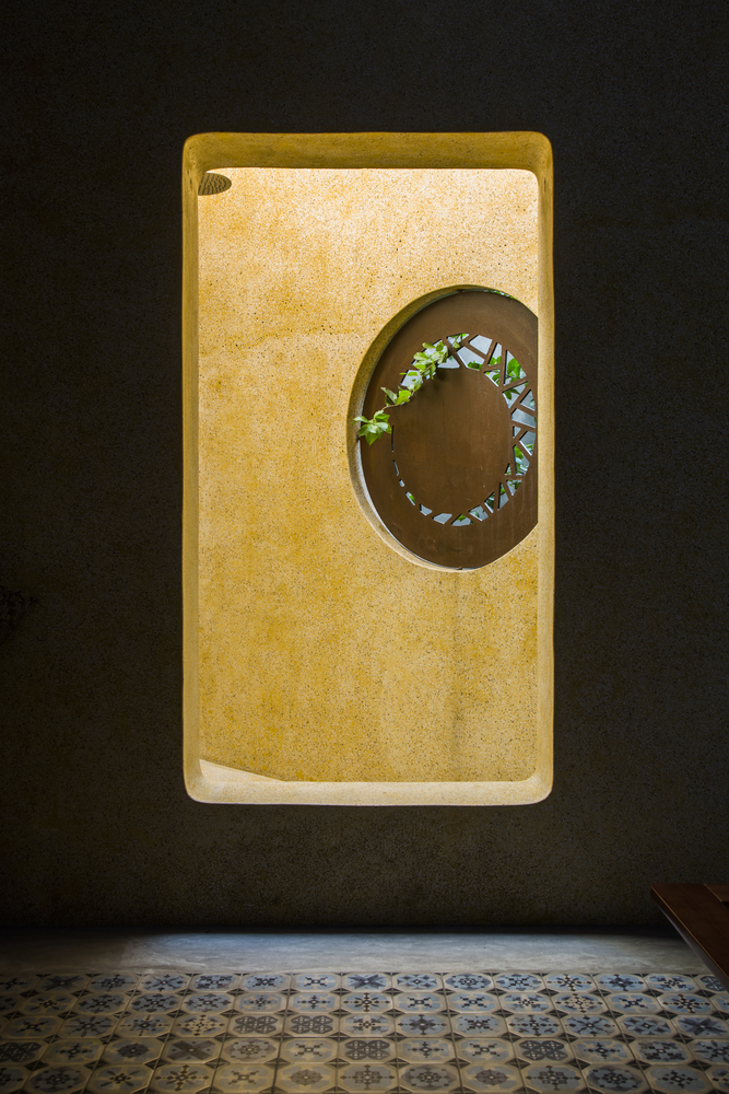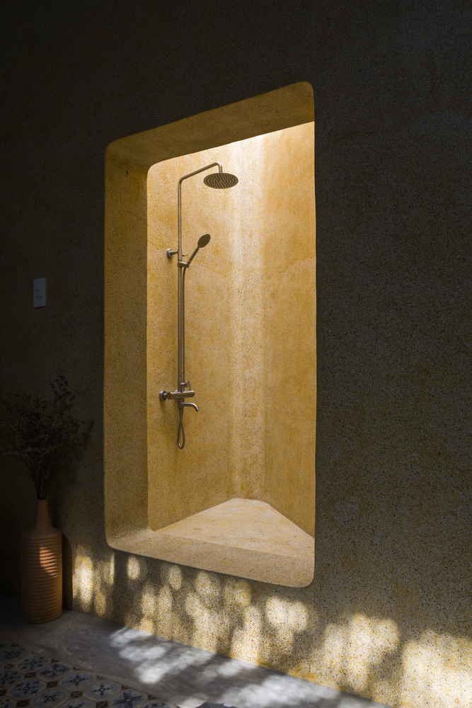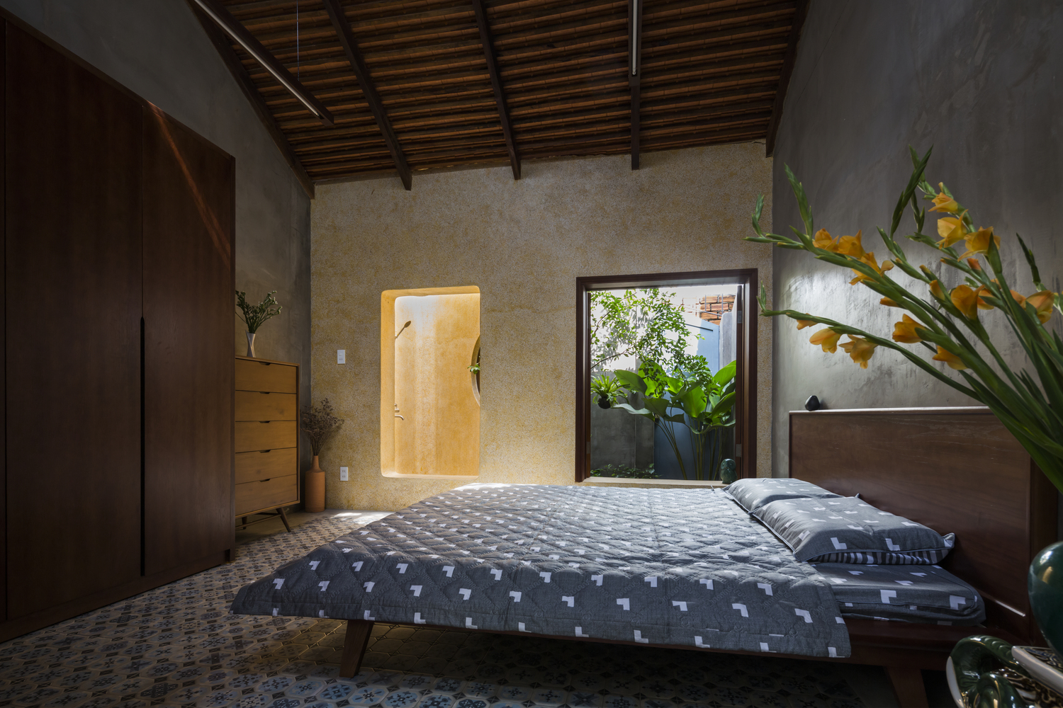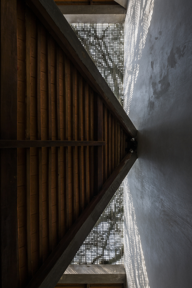 Không gian bếp được ngăn cách bằng ánh sáng tự nhiên, kết hợp khu vườn nhỏ trồng một số loại rau để nấu nướng. Khu vườn nhỏ như một chiếc bẫy gió luân chuyển không khí cho ngôi nhà. Ngôi nhà dài và có sự tiếp nối, phòng ngủ được bố trí cuối nhà kết hợp sân vườn, căn phòng mở cửa sổ ra không gian thiên nhiên.