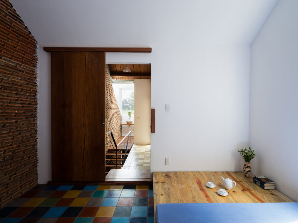 Những bức tường ngói đã chứng tỏ tính hiệu quả của mình khi giữ ấm cho ngôi nhà vào ban đêm và mát mẻ vào những ngày nắng. Chúng còn gợi nhớ cho gia chủ những khoảnh khắc yên bình ở làng quê Việt Nam khi họ còn trẻ. Ánh sáng cũng có câu chuyện riêng trong ngôi nhà ấm cúng này.