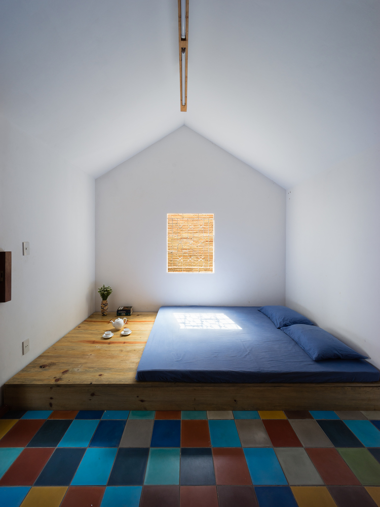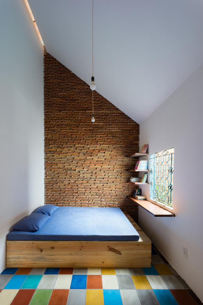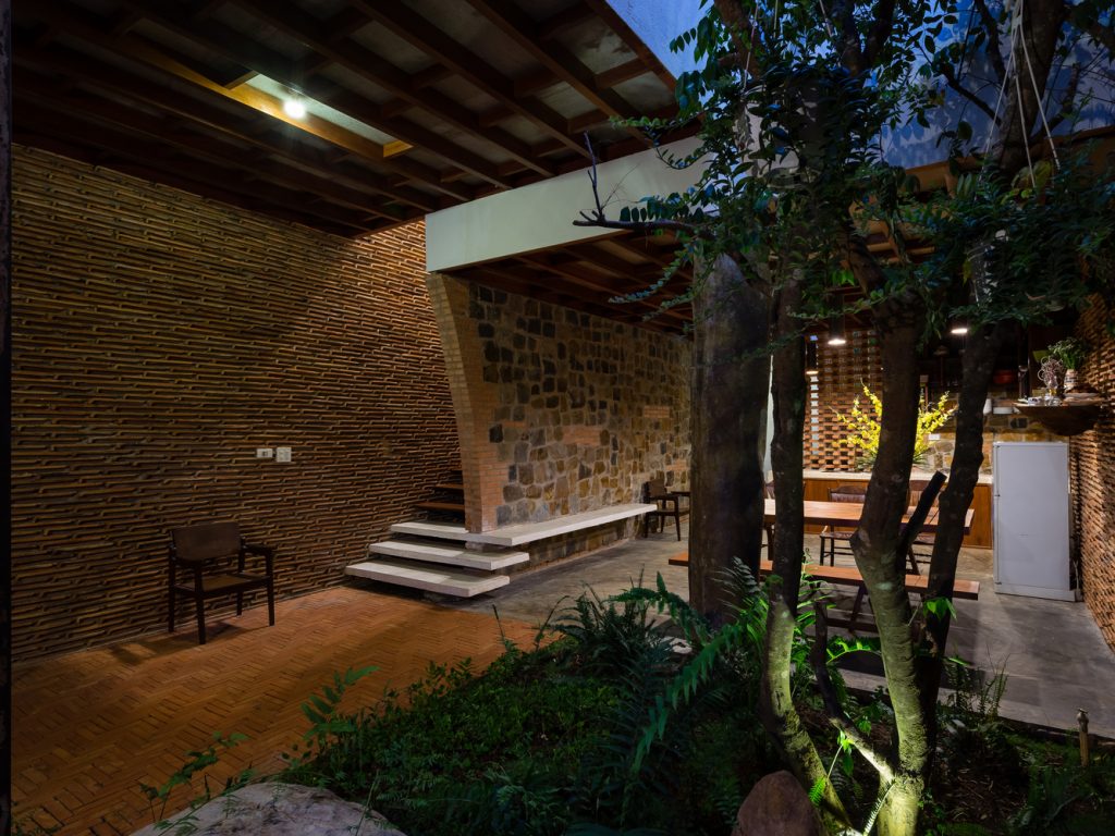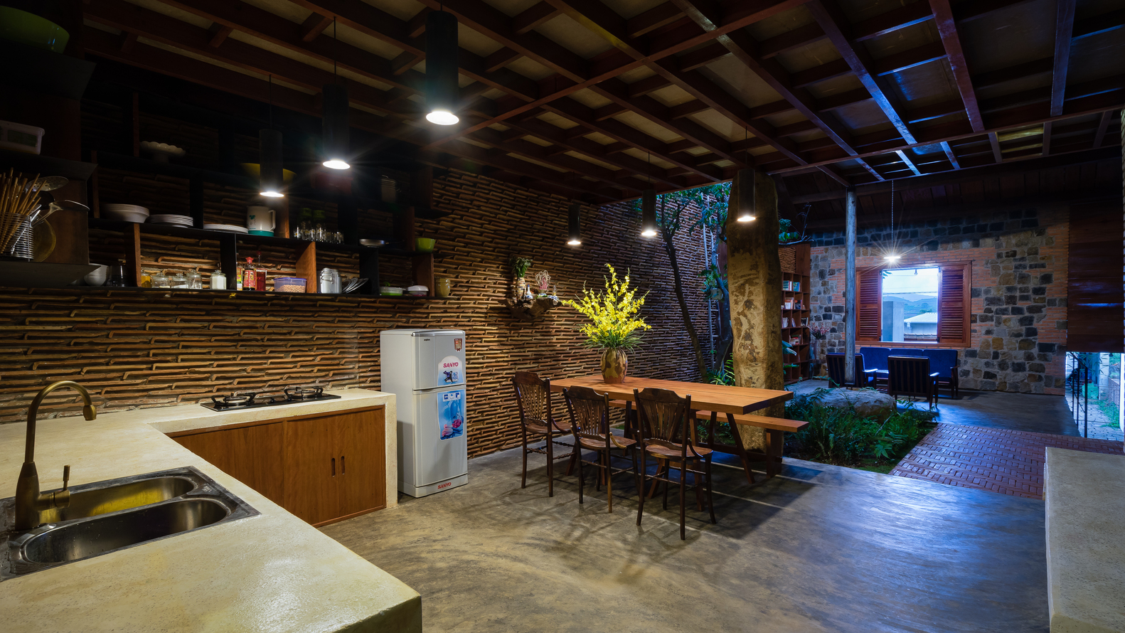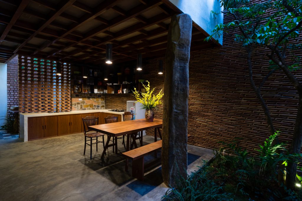 Những bức tường ngói đã chứng tỏ tính hiệu quả của mình khi giữ ấm cho ngôi nhà vào ban đêm và mát mẻ vào những ngày nắng. Chúng còn gợi nhớ cho gia chủ những khoảnh khắc yên bình ở làng quê Việt Nam khi họ còn trẻ. Ánh sáng cũng có câu chuyện riêng trong ngôi nhà ấm cúng này.