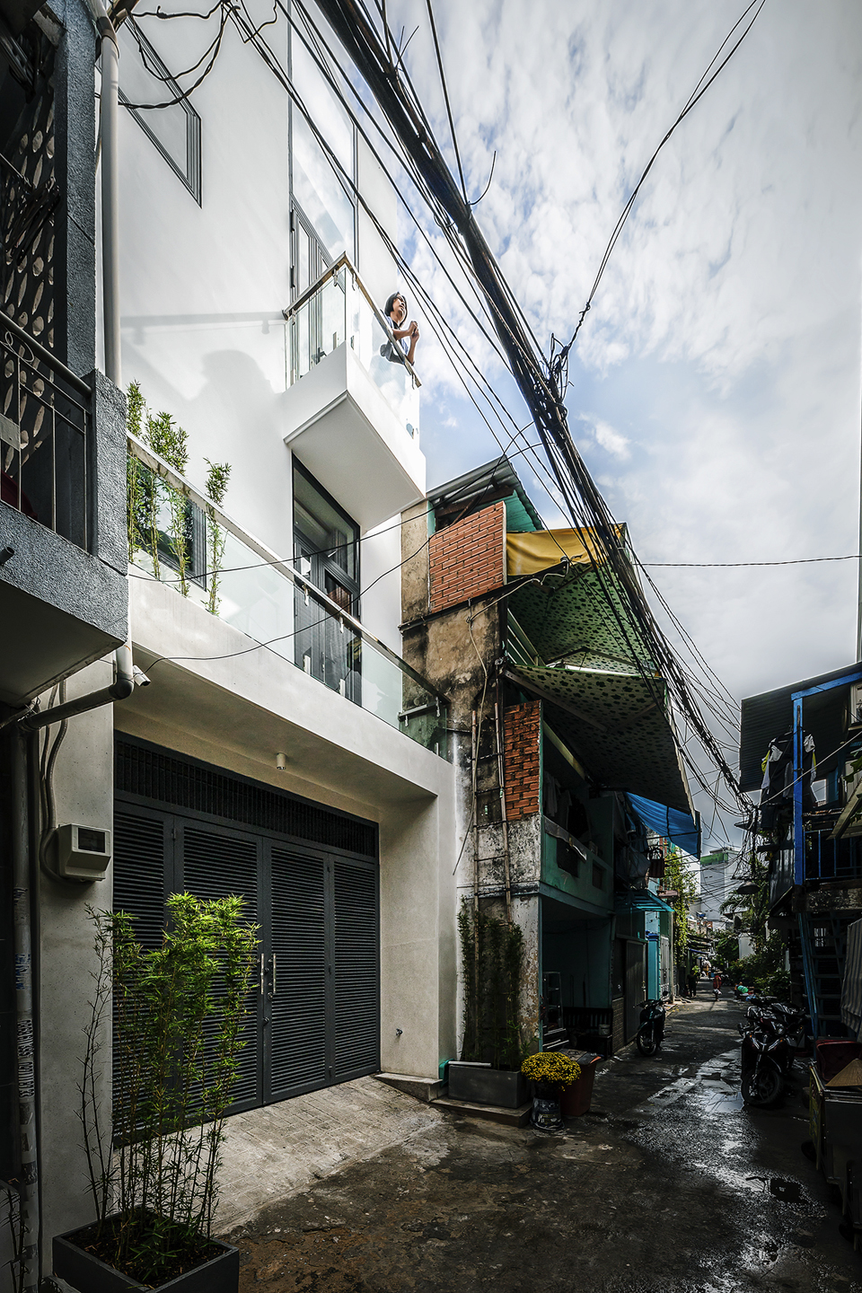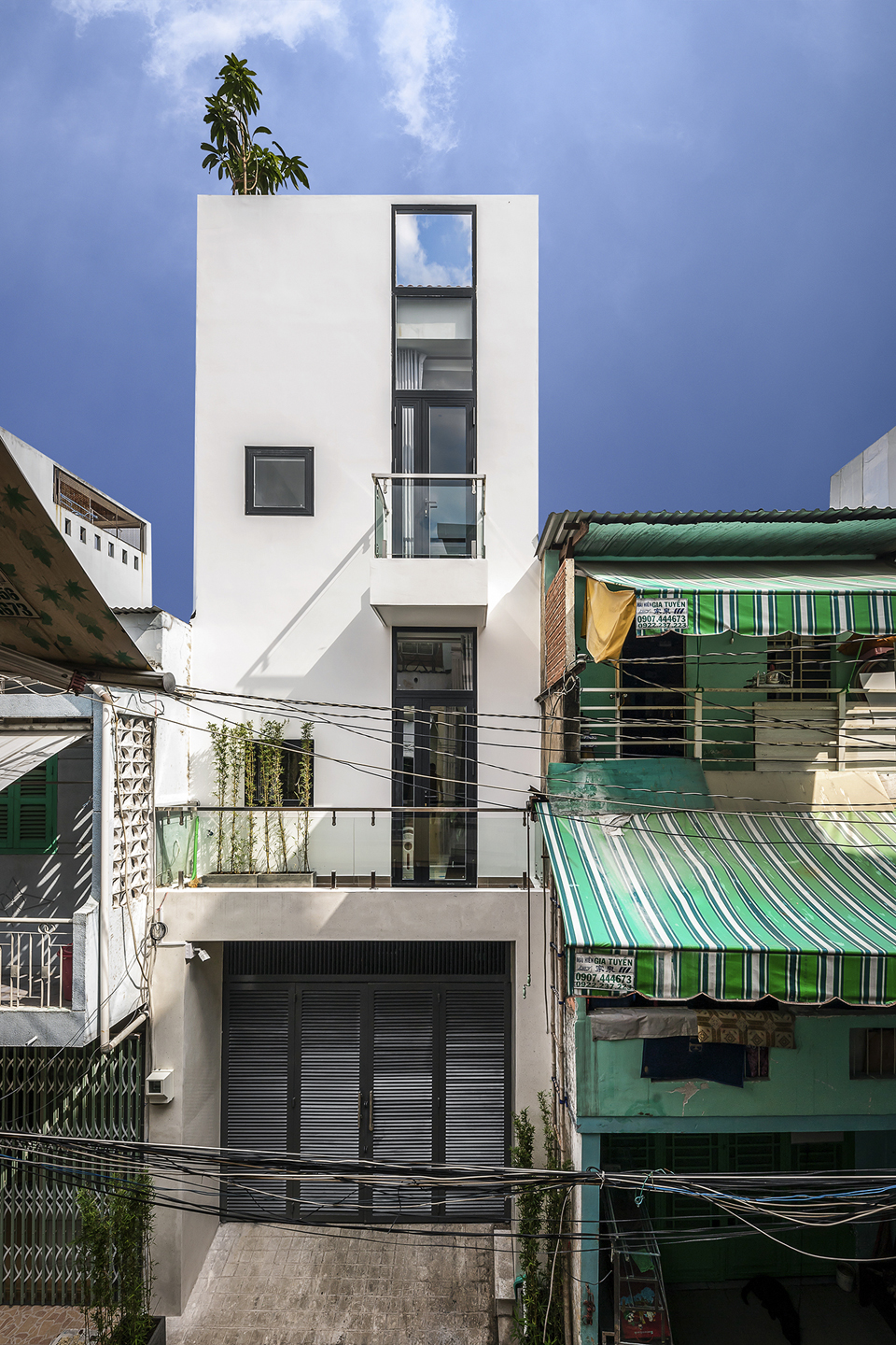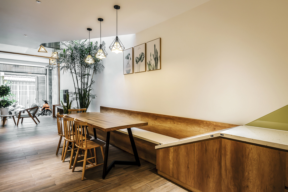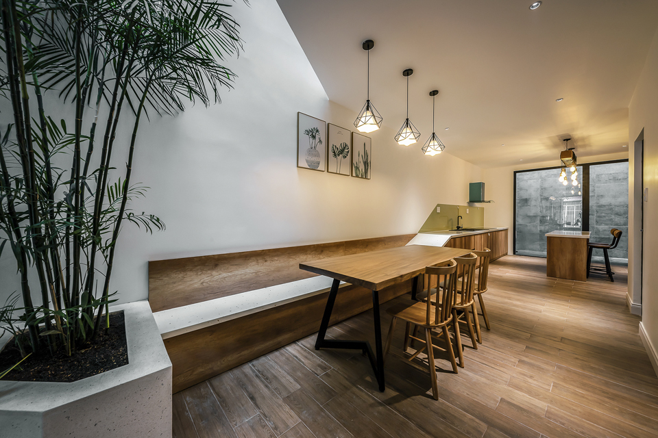 Story Architecture thiết kế không gian thông tầng là khe hẹp nằm dài. Lấy ánh sáng chính giữa và phía sau làm cho các phòng đều lấy được gió và ánh sáng tự nhiên, tạo được sự kết nối ở các tầng mà không cần phải di chuyển hay dùng điện thoại liên lạc.