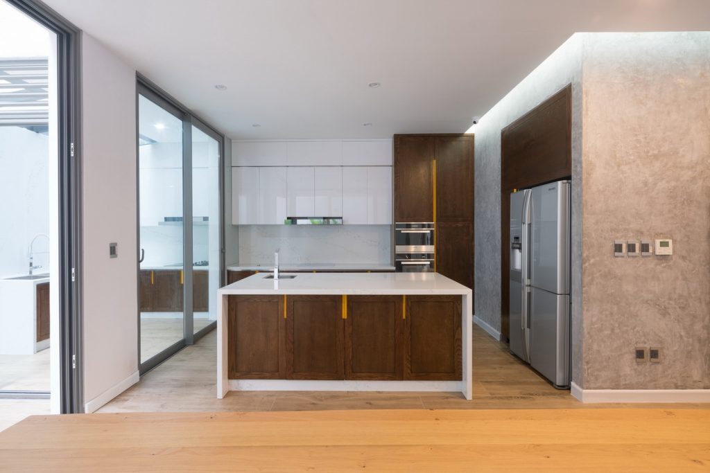 Những vật liệu thô mộc và chi tiết gỗ, thép cắt bằng công nghệ CNC được sử dụng tạo điểm nhấn ở những vị trí đặc biệt nên không gian ngôi nhà rất hiện đại, tiện nghi mà vẫn có chút hồn truyền thống của văn hóa Việt và thiên nhiên.