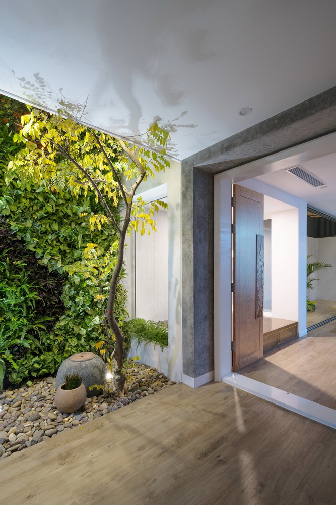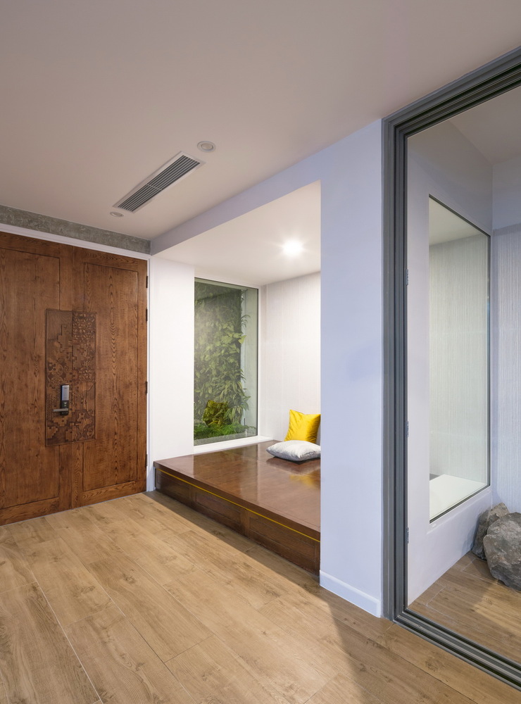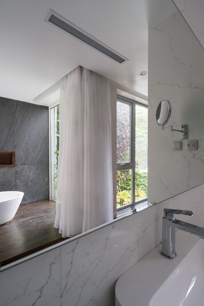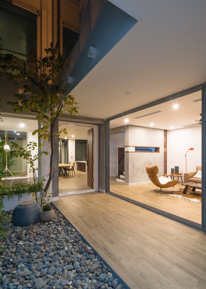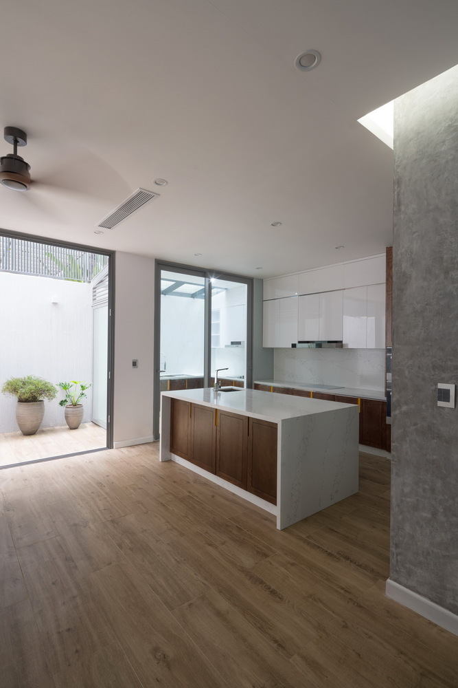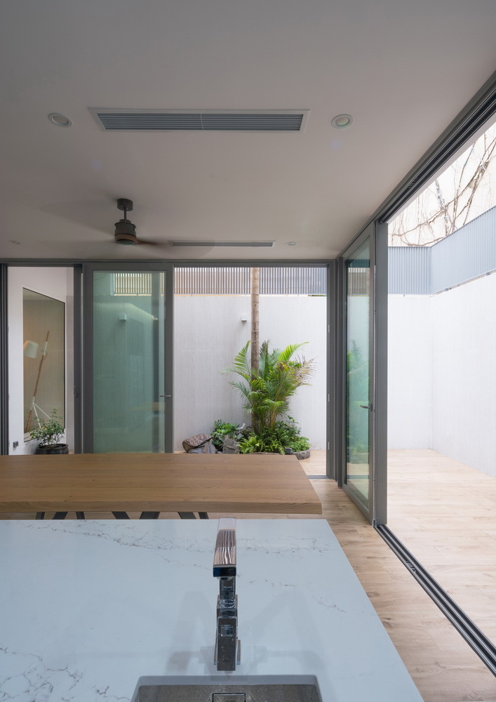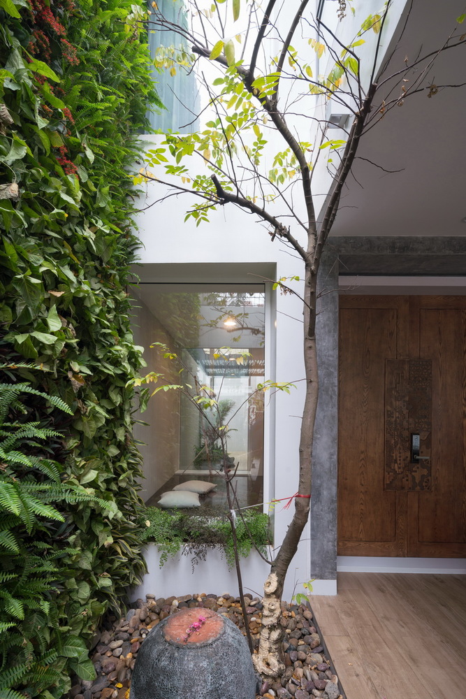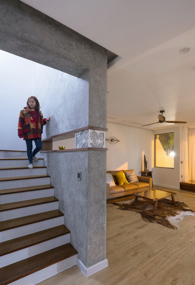 Chức năng rất quan trọng, phải được giải quyết rất tốt nhưng các yếu tố thiên nhiên, cây xanh, thông gió, ánh sáng lại là những thứ phải được ưu tiên khi nghiên cứu thiết kế. Với hiện trạng đó nhóm KTS đã quyết định can thiệp vào cấu trúc ngôi nhà, rất nhiều tường ngăn được phá bỏ, cột và dầm được cắt và gia cố tại nhiều vị trí quan trọng nhằm tạo ra sự liên hoàn, kết nối cho nhiều chức năng của ngôi nhà.