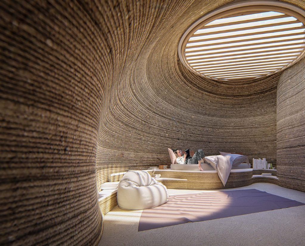 Nhóm kiến trúc sư Mario Cucinella Architects (MCA) đã hợp tác với WASP – chuyên gia trong lĩnh vực in 3D ở Ý – để xây dựng nên những ngôi nhà bằng vật liệu hoàn toàn tự nhiên và bền vững có thể tái chế đó là đất thô.
