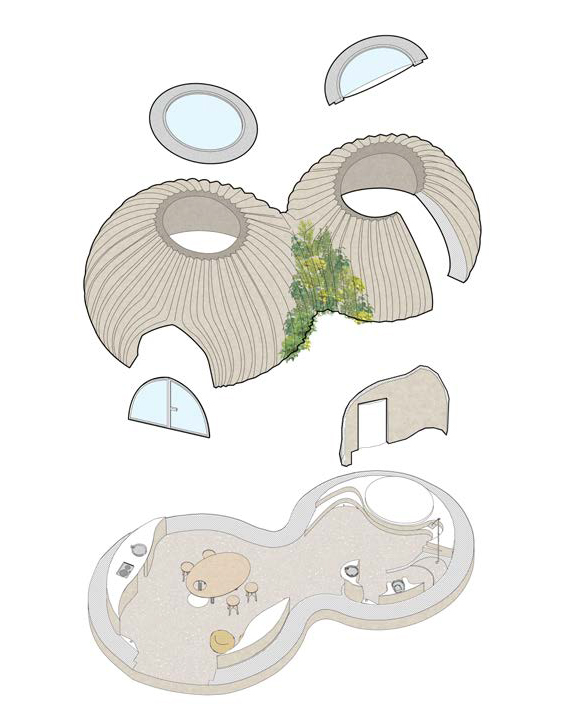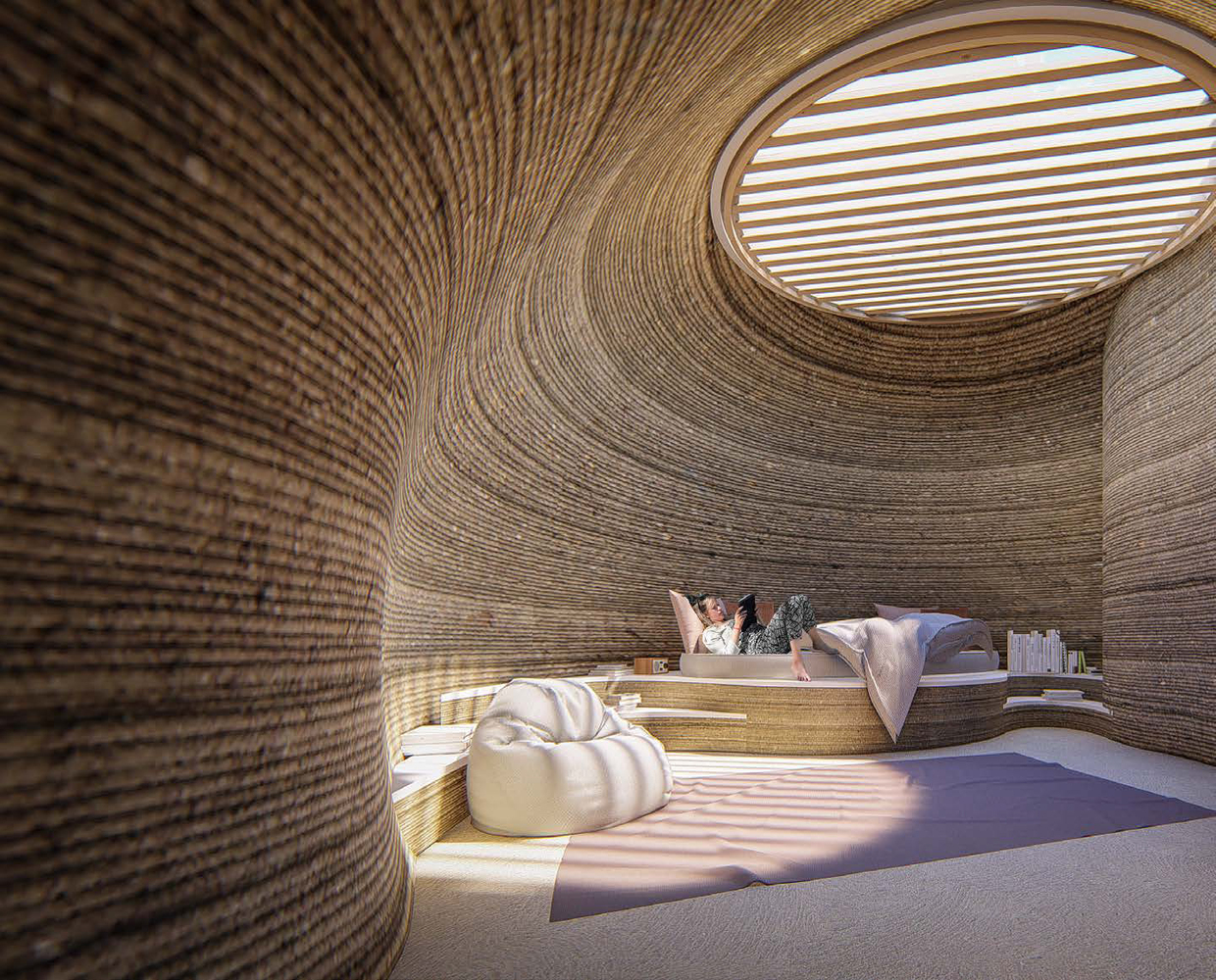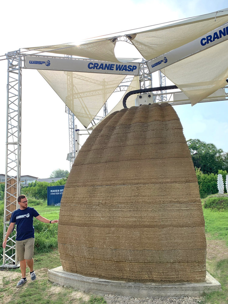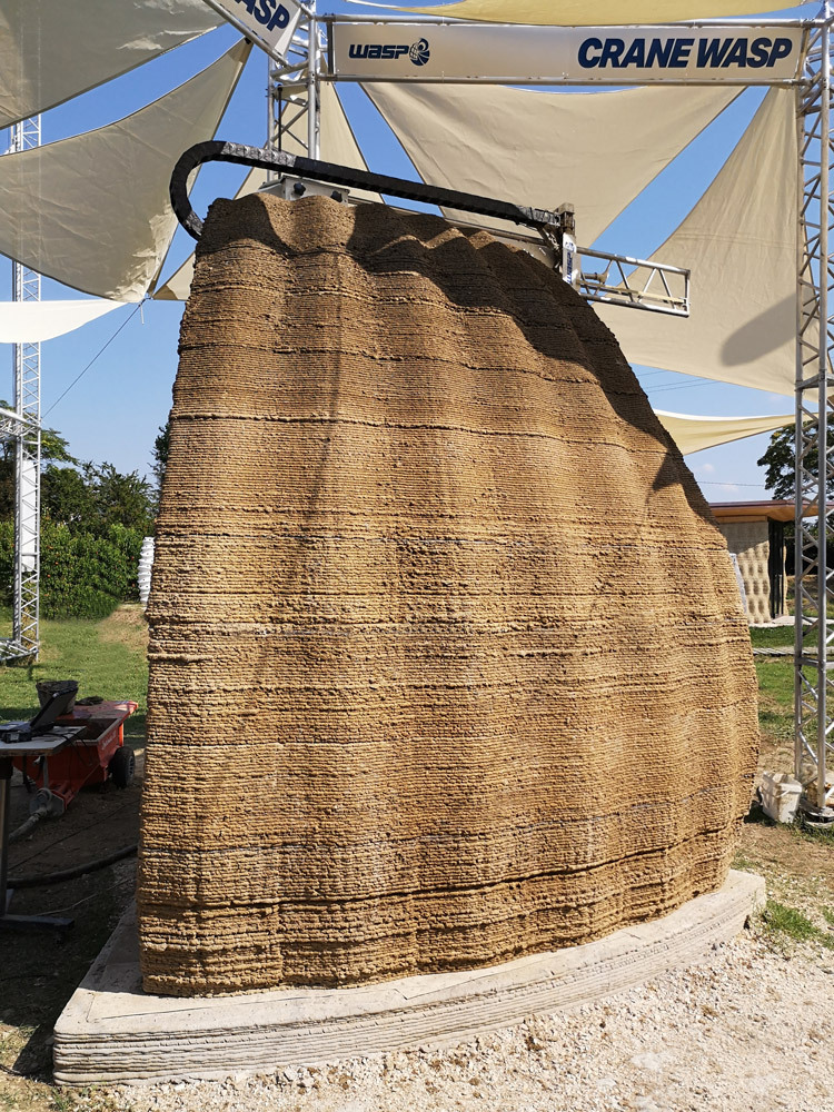Nhóm kiến trúc sư Mario Cucinella Architects (MCA) đã hợp tác với WASP – chuyên gia trong lĩnh vực in 3D ở Ý – để xây dựng nên những ngôi nhà bằng vật liệu hoàn toàn tự nhiên và bền vững có thể tái chế đó là đất thô.