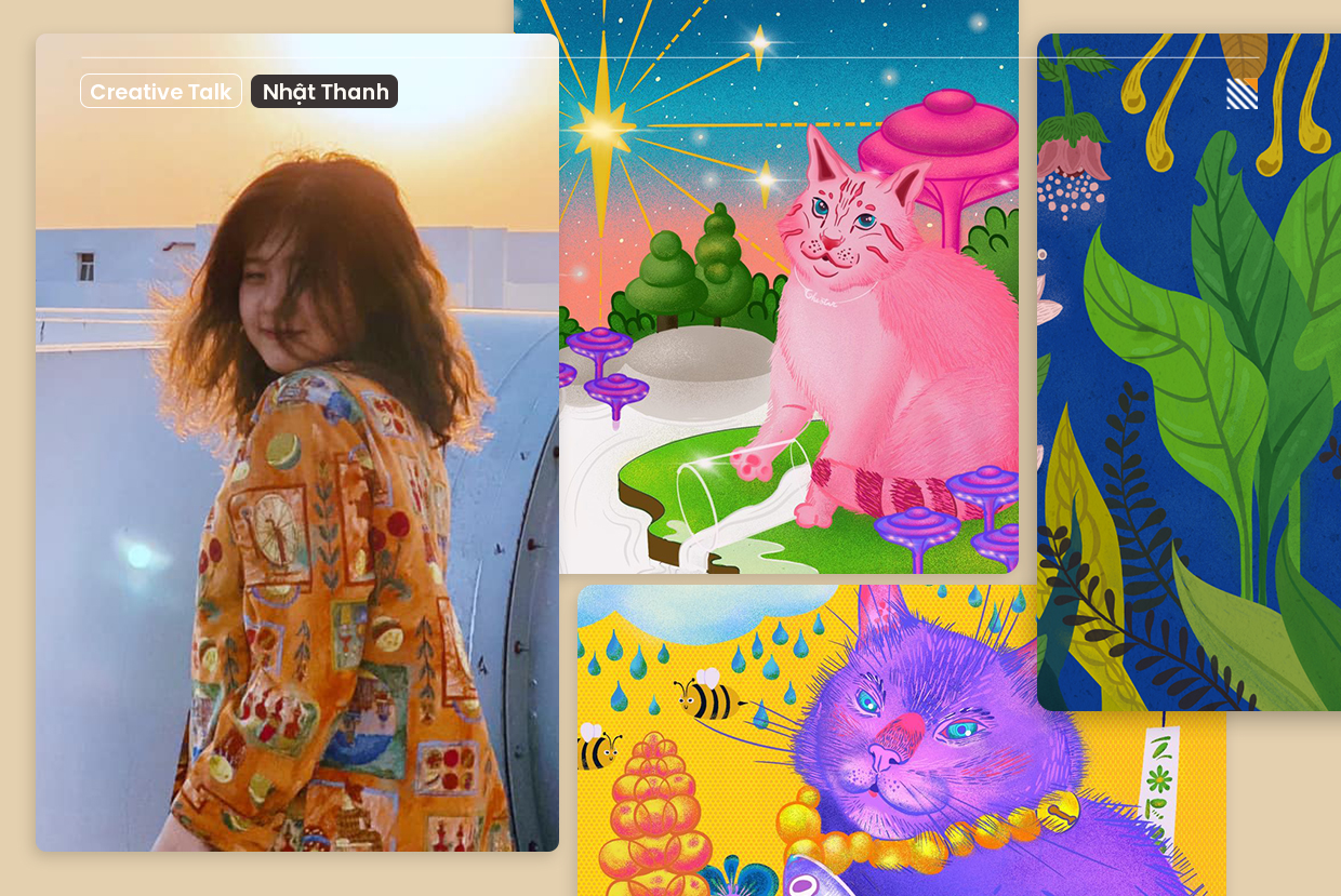 Nhật Thanh – nhà thiết kế sáng tạo / vẽ minh họa từng làm việc ở các studio, agency lớn có thể kể đến: Behalf Studio, Dentsu Redder hay Hypersia. Bây giờ, công việc hiện tại của cô là nhà thiết kế / vẽ minh họa tự do tại Sài Gòn. Tốt nghiệp ngành Digital Media Design (Thiết kế truyền thông) của trường đại học RMIT.