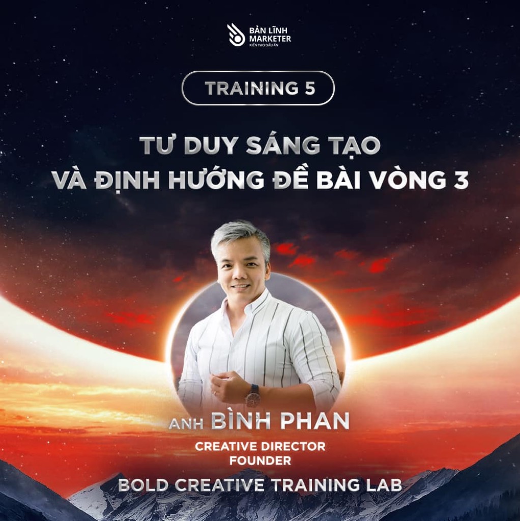 Song song với đó, Training 5: Tư Duy Sáng Tạo & Định Hướng Đề Bài Vòng 3 với Diễn giả là anh Bình Phan – Creative Director/Founder Bold Creative Training Lab đã hỗ trợ các thí sinh có cách tiếp cận phù hợp với 1 thử thách mới mẻ, khó khăn liên quan đến chiến dịch CSR tại Vòng 3 Bản Lĩnh Marketer.