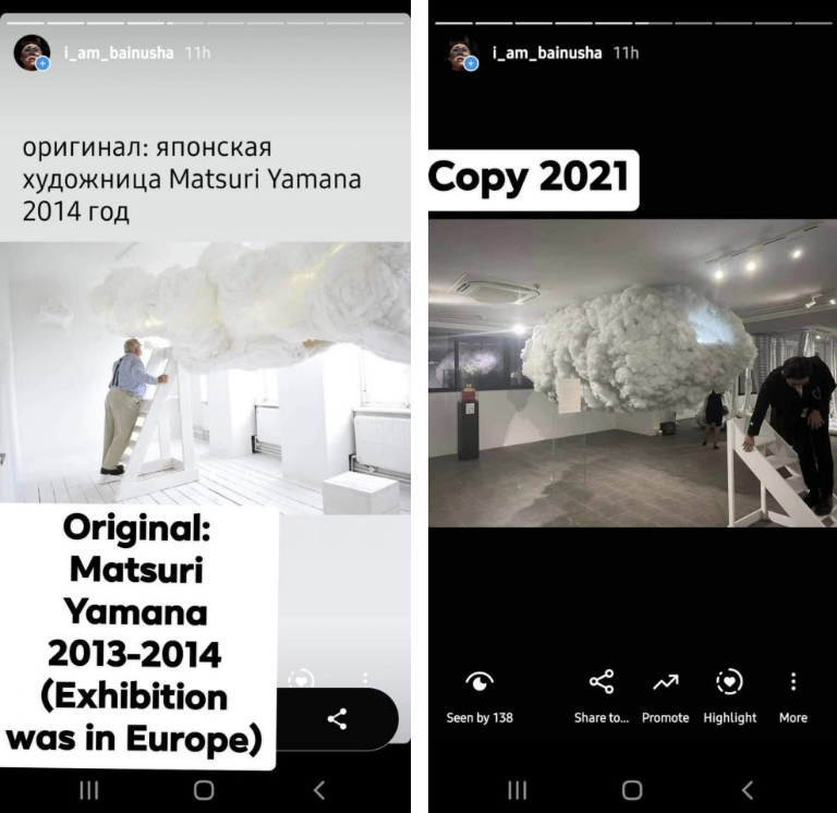 Nghệ sĩ Chinh Ba, bạn của Baina đã chia sẻ thông tin này và ngay lập tức nhận được nhiều sự quan tâm của giới chuyên môn. Trong các bài chia sẻ, Baina nhấn mạnh: “Tôi tin nghệ sĩ ở Việt Nam nên tôn trọng sự nguyên bản. Tôi tự hỏi liệu có một nền tảng nào hỗ trợ điều này không. Thật kinh khủng khi họ tin chẳng ai chú ý điều này cả.”