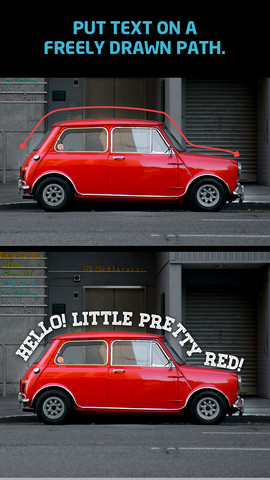 Path On cho phép bạn thêm chữ vào hình ảnh theo những cách độc đáo. Bạn vẽ đường path mà bạn muốn, sau đó gõ text – và thế là text bạn gõ sẽ đi theo đường path, thật quá dễ dàng phải không?!