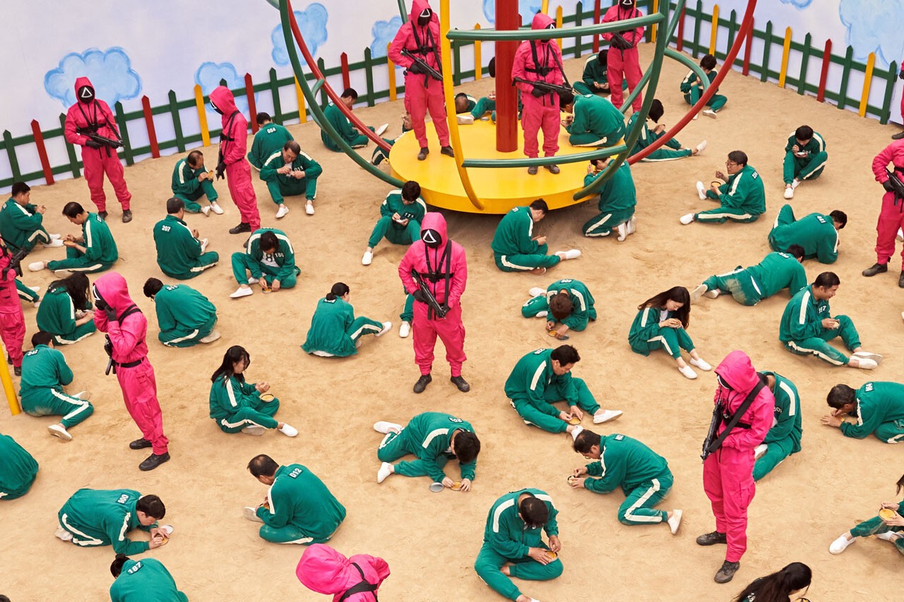 Ý đồ của đoàn làm phim cũng là tạo ra sự tương phản lớn giữa đồng phục của người chơi và lính trong thế giới Squid Game. Họ muốn khán giả liên tưởng đến hình ảnh “trẻ em chơi trong công viên và có người lớn quan sát”.