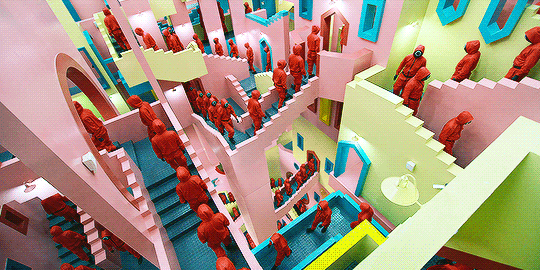 Một trong những cảnh hay và ấn tượng nhất của Squid Game đó chính là những bậc cầu thang màu pastel sặc sỡ đến khó hiểu. Khi xem ‘Squid Game’, có lẽ ai cũng cảm nhận được bộ phim đang muốn truyền tải một khái niệm nào đó.