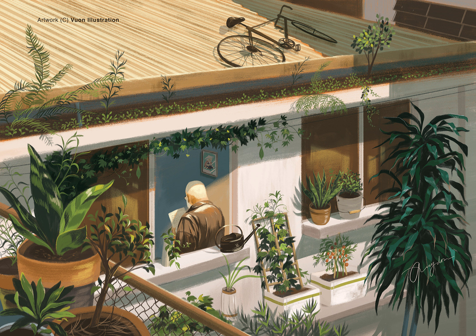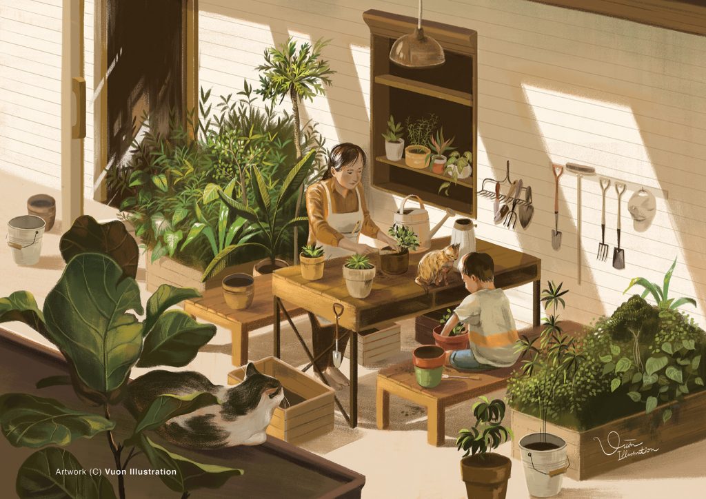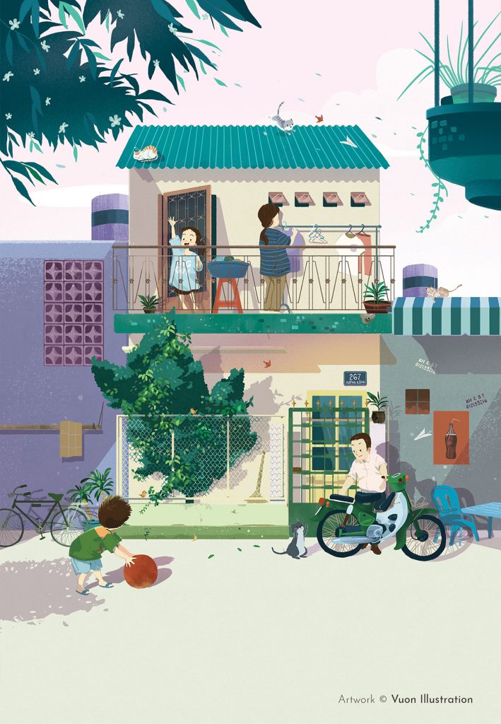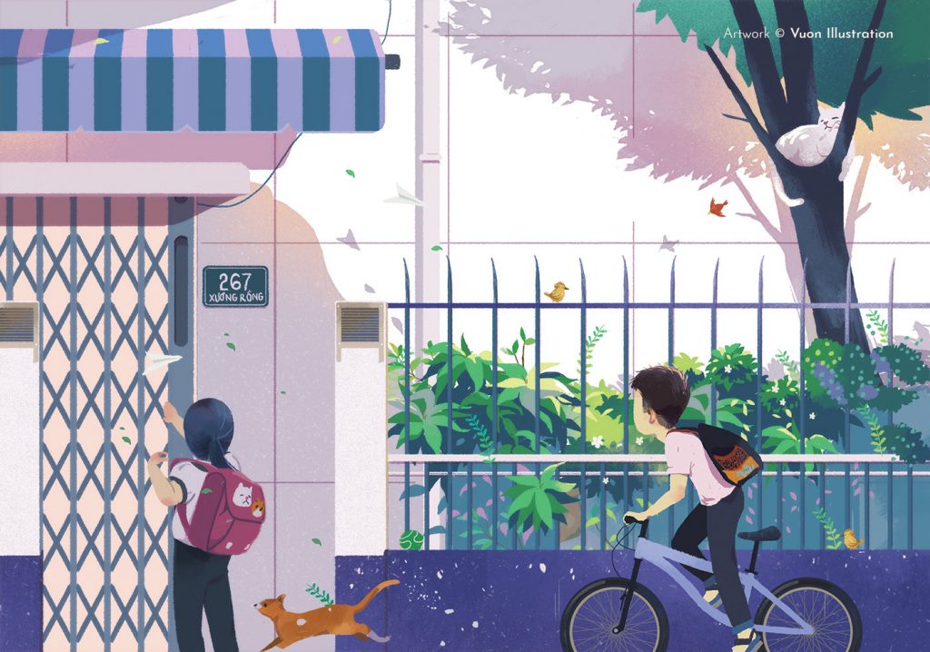 Thể nghiệm ở nhiều phong cách khác nhau, mỗi kiểu đều mang đến một cảm xúc riêng biệt, nhưng có thể nói dấu ấn đặc biệt của Vườn Illustration là các tác phẩm về cuộc sống, vẻ đẹp êm đềm và giản dị ở từng góc nhà, con phố. Đó cũng có thể là những câu chuyện, ký ức hay những nỗi buồn nhưng trong một cảm xúc nhẹ nhàng. Cùng ngắm nhìn loạt tranh minh họa mang đến cảm giác yên bình và nên thơ từ các họa sĩ trẻ của Vườn Illustration nhé!