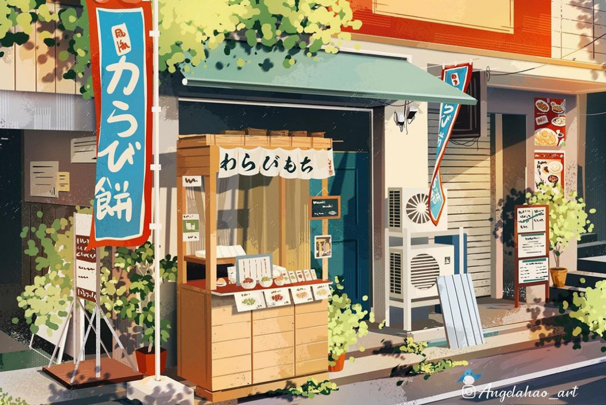 Hao giải thích: “Tôi cũng thích thay đổi cấu trúc mặt tiền cửa hàng hoặc kết hợp các vật dụng khác nhau để tạo ra một diện mạo mới. Đôi khi tôi nhìn vào một bức ảnh tham khảo, tôi sẽ tưởng tượng điều gì sẽ xảy ra nếu cửa hàng Raman này thực sự là một cửa hàng sách. Sau đó, tôi sẽ bắt đầu ‘sửa sang lại’ cửa hàng trên canvas của mình”.