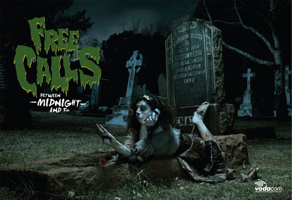 Vì sắp đến Halloween – một lễ hội lớn được hưởng ứng nồng nhiệt trên khắp thế giới nên hôm nay RGB.vn muốn giới thiệu đến các bạn những poster quảng cáo mang đầy màu sắc kinh dị. Khi thực hiện bài viết này ,tôi đặc biệt thích bộ tác phẩm của Vodacom quảng cáo cho dịch vụ gọi miễn phí vào lúc khuya, nó đã truyền tải những thông điệp rất rõ ràng và ấn tượng mạnh giúp người xem dễ dàng nắm bắt được thông tin. Quảng cáo mùa Halloween của Heneiken cũng tuyệt vời không kém khi vẫn giữ được phong cách đơn giản, sang trọng vốn có của mình mà vẫn mang được chất ma quái trong quảng cáo này.