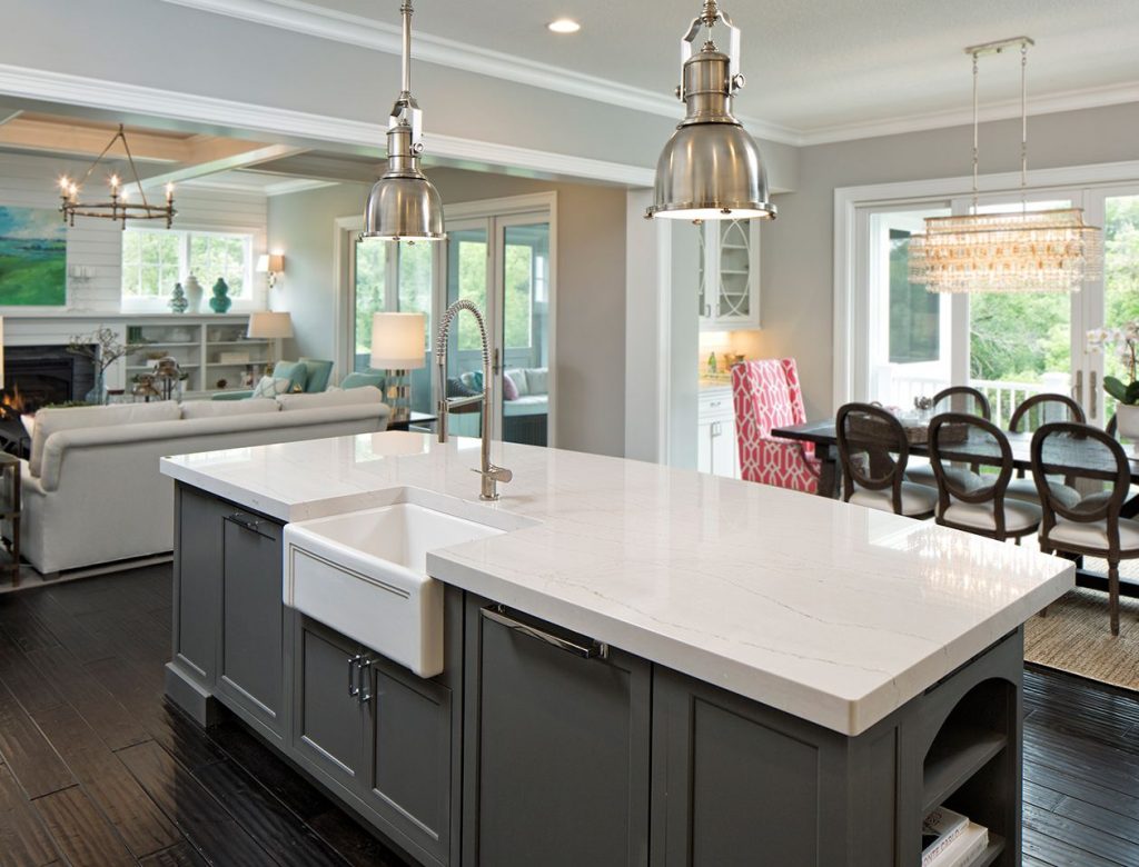 - Thạch anh sáng màu là một lựa chọn thay thế hợp lí vì nó không đắt bằng đá granit, dễ lau chùi hơn và phù hợp với đa dạng phong cách.