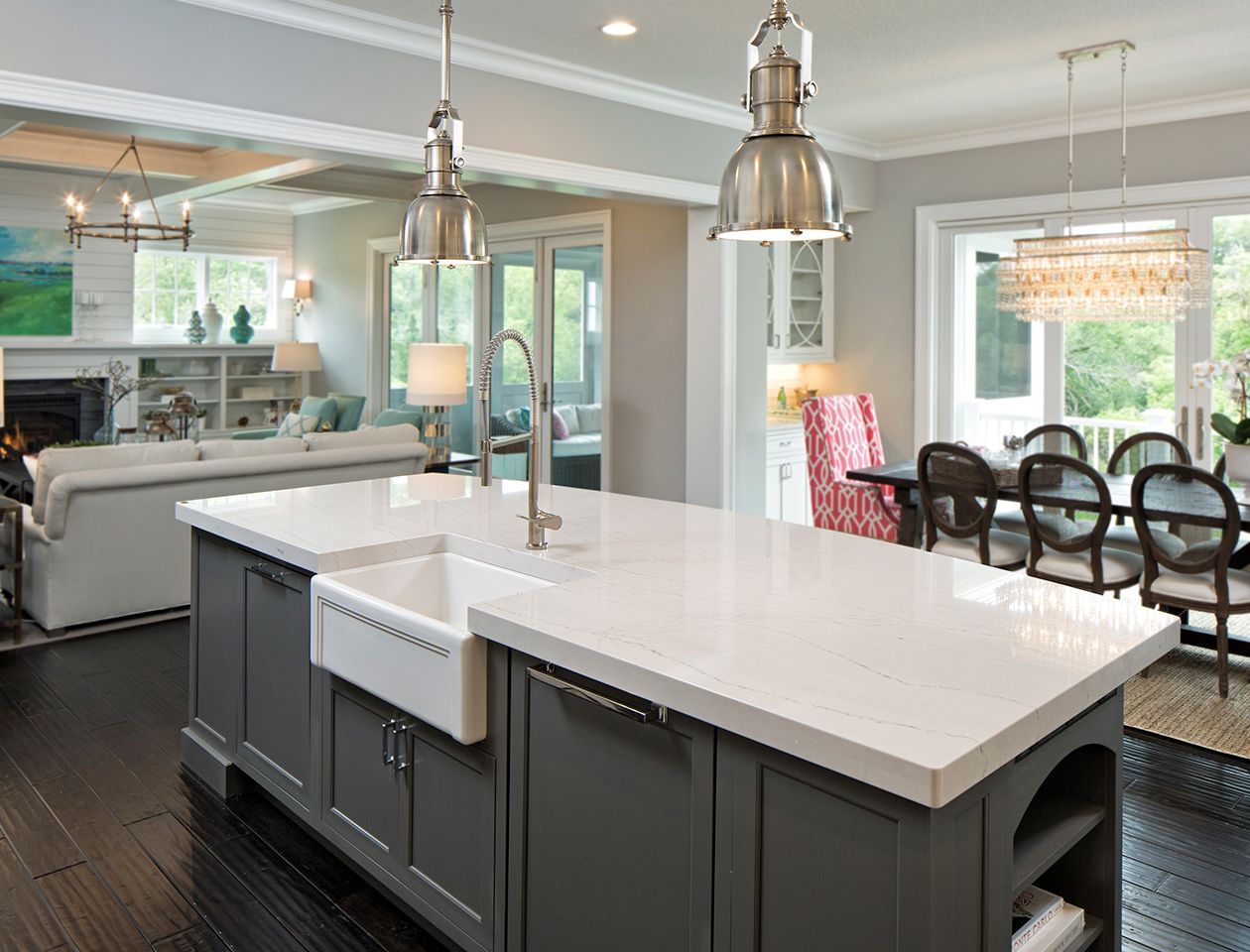 Đá hoa cương đem lại cảm giác hoài niệm như ngôi nhà mà bạn đã lớn lên cùng năm tháng, nhưng đó có lẽ chính là lý do tại sao nó không còn là xu hướng nữa. Năm nay xu thế sẽ hướng về đá thạch anh. Nó ít xốp hơn đá granite, vì vậy sẽ ít cần sự chăm sóc hơn. Ngoài ra thạch anh cũng đẹp và độc đáo hơn. Thêm vào đó, trên mặt bàn thạch anh, đồ trang trí và đồ vật sẽ trở nên nổi bật hơn, trong khi trên mặt bàn đá granit, đồ trang trí và đồ vật sẽ dễ bị lẫn vào trong những hoa văn có phần rối rắm.