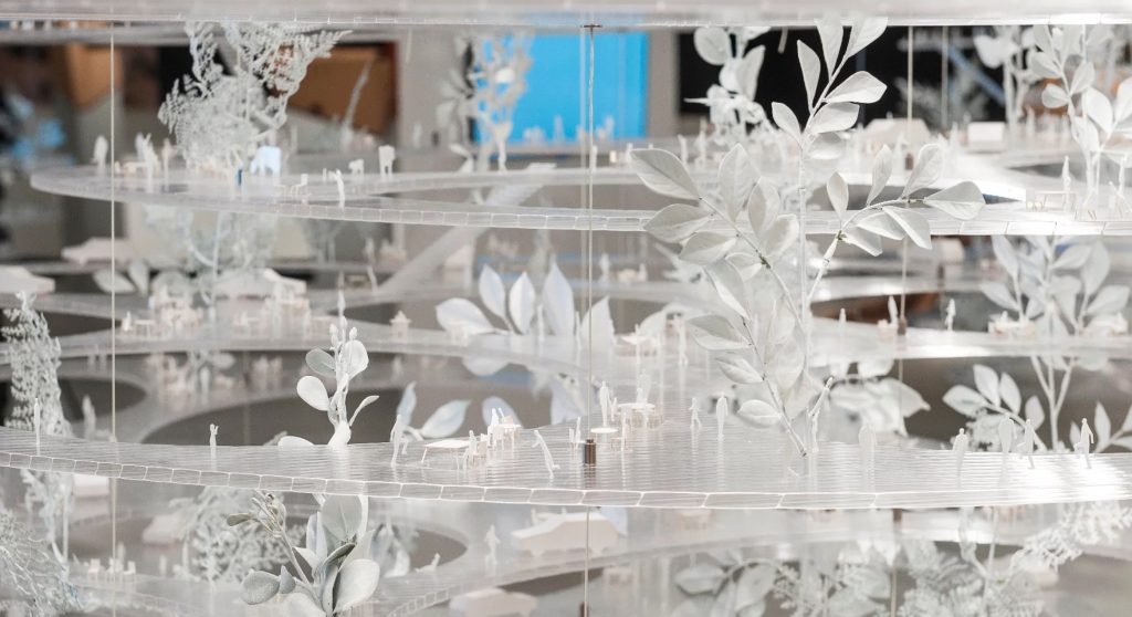Tác phẩm nghê thuật sắp đặt của Sou Fujimoto tại bảo tàng nghệ thuật đương đại Watari, Tokyo có tên là “Rừng, Núi, Mây”.