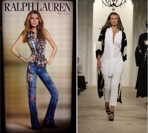 Ảnh số hóa quảng cáo của Raph Lauren bày ở trung tâm mua sắm ở Nhật trong đó có hình người mẫu Filippa Hamilton đang diễn trên sàn catwalk ở New York năm 2006. Cựu người mẫu của Ralph Lauren, Filippa khẳng định công ty đã không kí lại hợp đồng vì cho rằng cô “quá khổ”. Raph Lauren phủ nhận lời khẳng định này.
