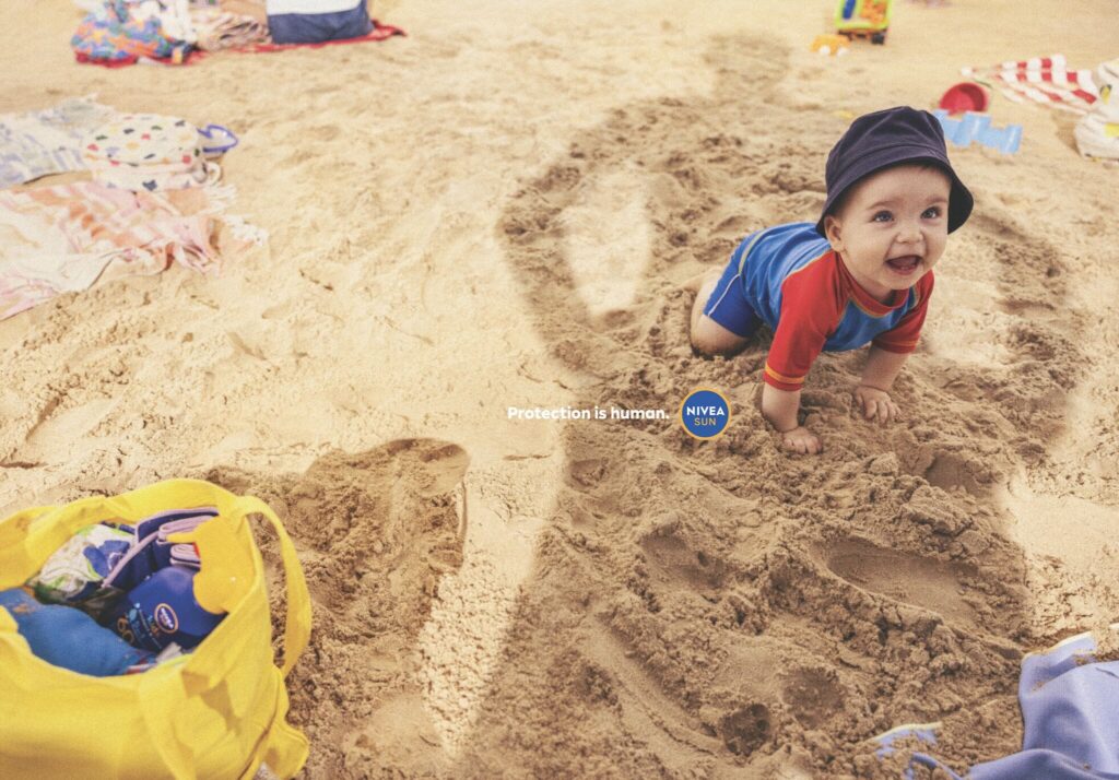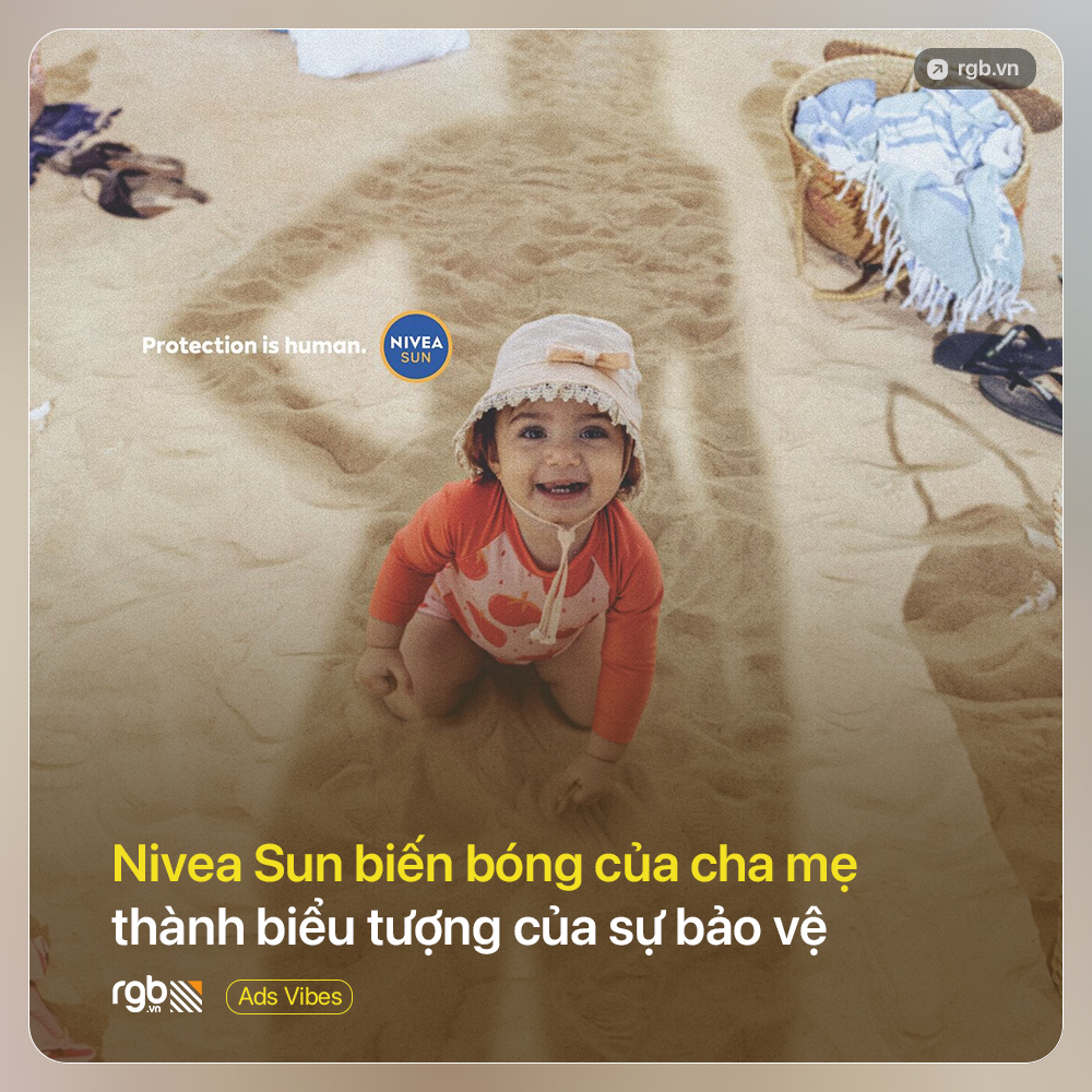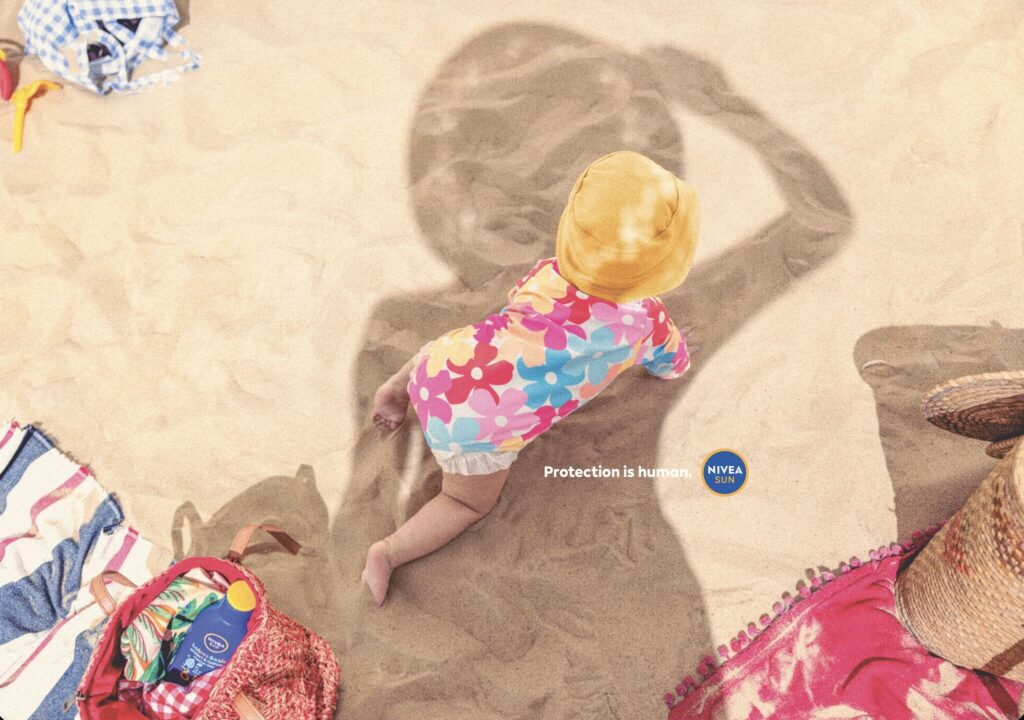 Trên bãi biển, việc che chắn cho trẻ khỏi ánh nắng gần như là một phản xạ tự nhiên. NIVEA Sun khai thác chính hành động quen thuộc này để tạo nên một chiến dịch print đơn giản nhưng mạnh mẽ, nhắc nhở về tầm quan trọng của chống nắng mà không hề mang tính áp đặt.
