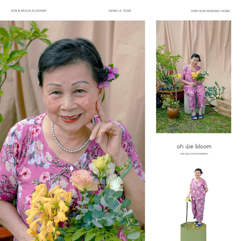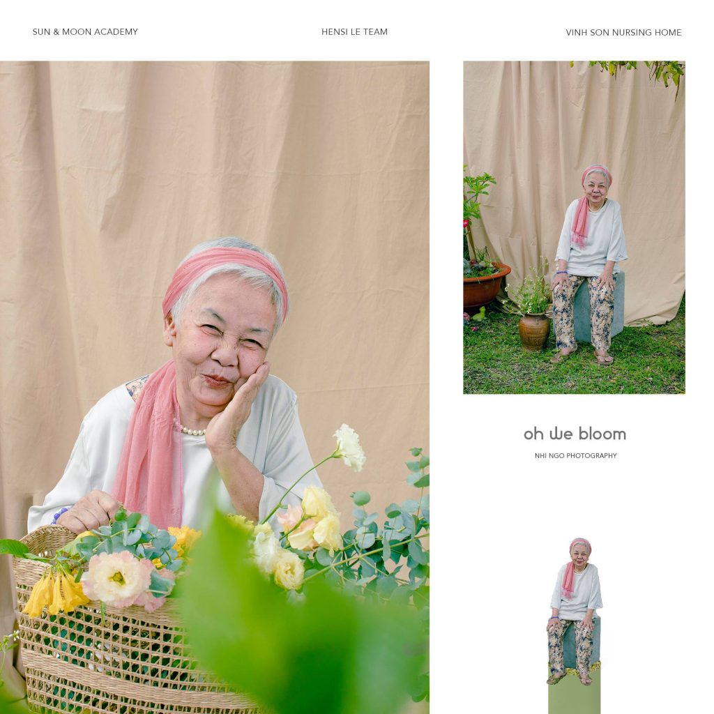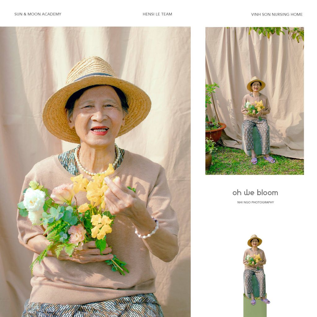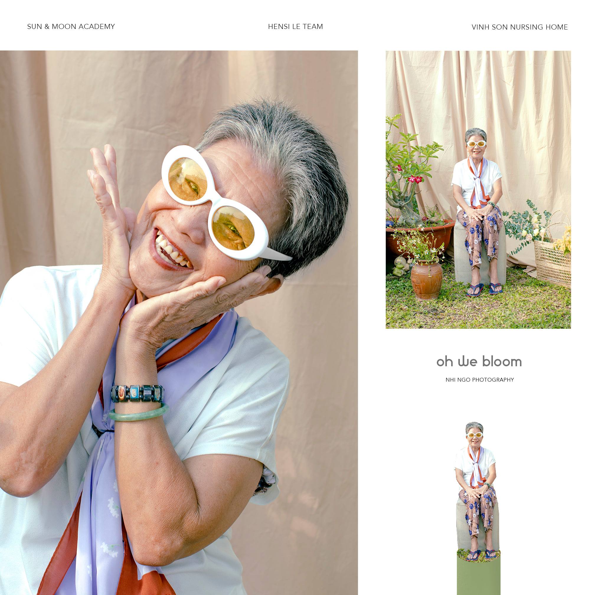 Bộ ảnh Oh We Bloom (Và những đoá hoa vẫn luôn nở rộ) mang concept đúng như cái tên của nó: trẻ trung, tươi sáng và rực rỡ. Đạo cụ set up cho buổi chụp là những thứ đơn giản sẵn có, những bông hoa dại được ekip hái ngay trên đường vào viện dưỡng lão, mọi thứ mộc mạc nhưng mang lại những hình ảnh gần gũi và cảm xúc tự nhiên. Điều quan trọng nhất cần cho bộ ảnh chính là cảm xúc của các nhân vật, khi các cụ thoải mái trải lòng và trò chuyện, tình cảm như những người bà thật sự của các thành viên trong ekip đã giúp cho Nhi Ngờ ghi lại được những bức ảnh “xuất thần”.