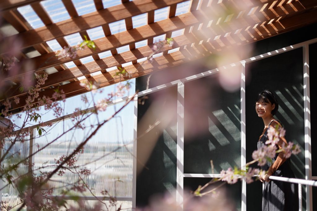 Tất cả các phòng đều được kết nối với sân vườn bằng một cửa sổ lớn giúp tạo ra một không gian linh hoạt, có thể thay đổi công năng dễ dàng tùy theo nhu cầu của người sử dụng. Bạn có thể tìm một góc nhỏ bên chiếc bàn gỗ dài để lặng lẽ ngắm nhìn bầu trời sau những tán cây hoa vàng đung đưa trong gió.